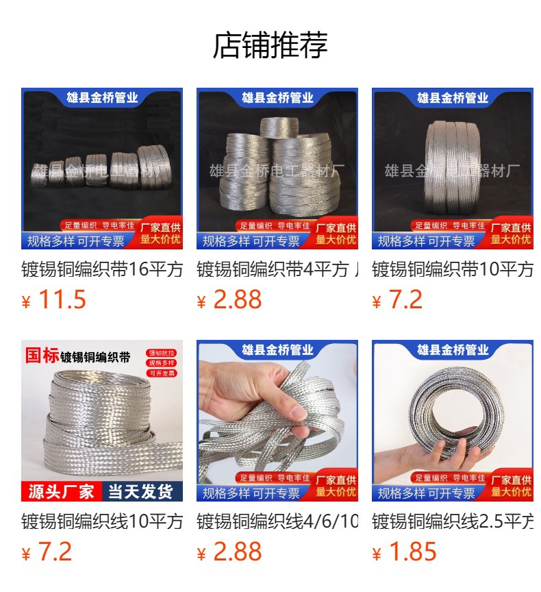 錫メッキ銅編み帯10平方メーカー現物多平方編み平銅線導電純銅線卸売り