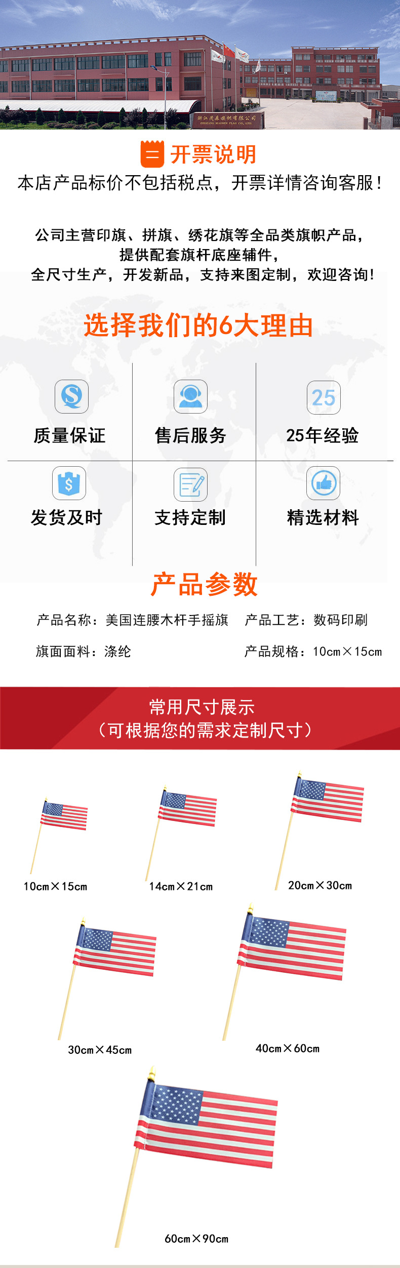 メーカー卸売りアメリカ木棒手振り旗10*15ポリエステル両面プリント木棒金木先手振り旗