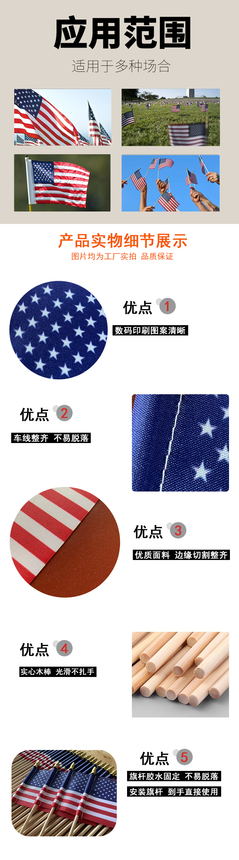 国境を越えたスポットアメリカ国旗アメリカ木棒手振り旗の銃口金頭ポリエステル棒付き旗春亜紡織
