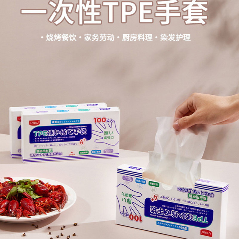 和風使い捨てTPE手袋100枚 厚手キッチンザリガニ