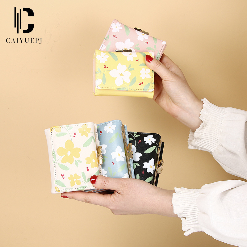 新款跨境高级感印花浅色女生钱包批发百搭零钱包碎花清新甜美短夹