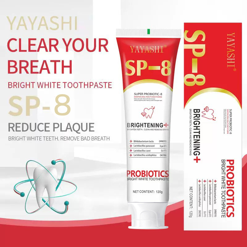 跨 境专 供SP-8益生菌亮白牙膏祛渍改善黄牙清口气120g跨 境牙膏