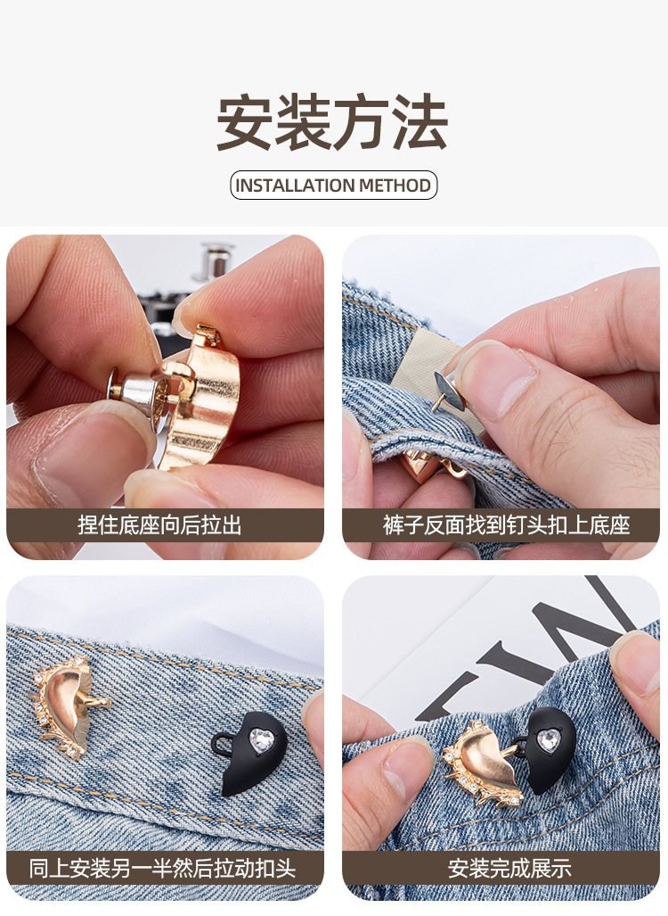 釘なしボタン伸縮式取り外し可能ボタン万能ボタン延長ボタンジーンズボタン調整可能ウエストボタン