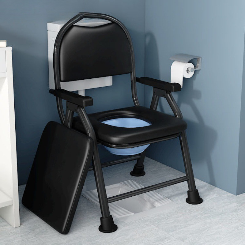 老人の椅子の滑り止めの大きい便器の家庭用折り畳み可能な移動の太い鋼管の座椅子の大人の便器