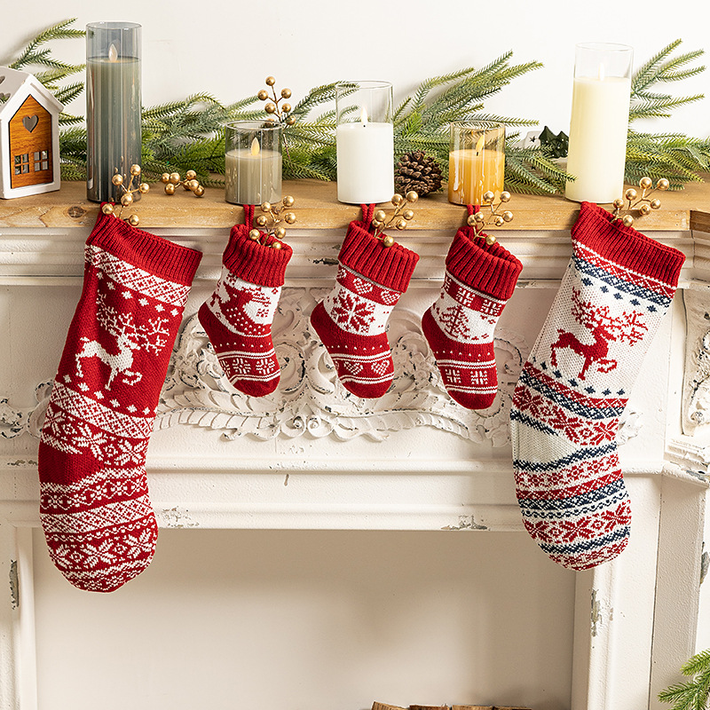 アマゾンクロスボーダーニットクリスマスソックスクリスマス装飾クリスマスギフトバッグニット赤い靴下ストラップ装飾
