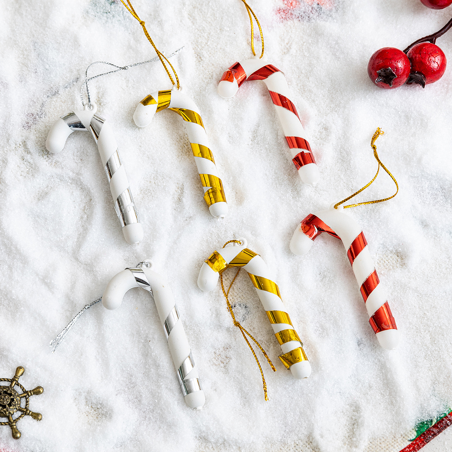 跨境圣诞节装饰品红白糖果小拐杖圣诞树挂件银色金色手工拐杖挂饰