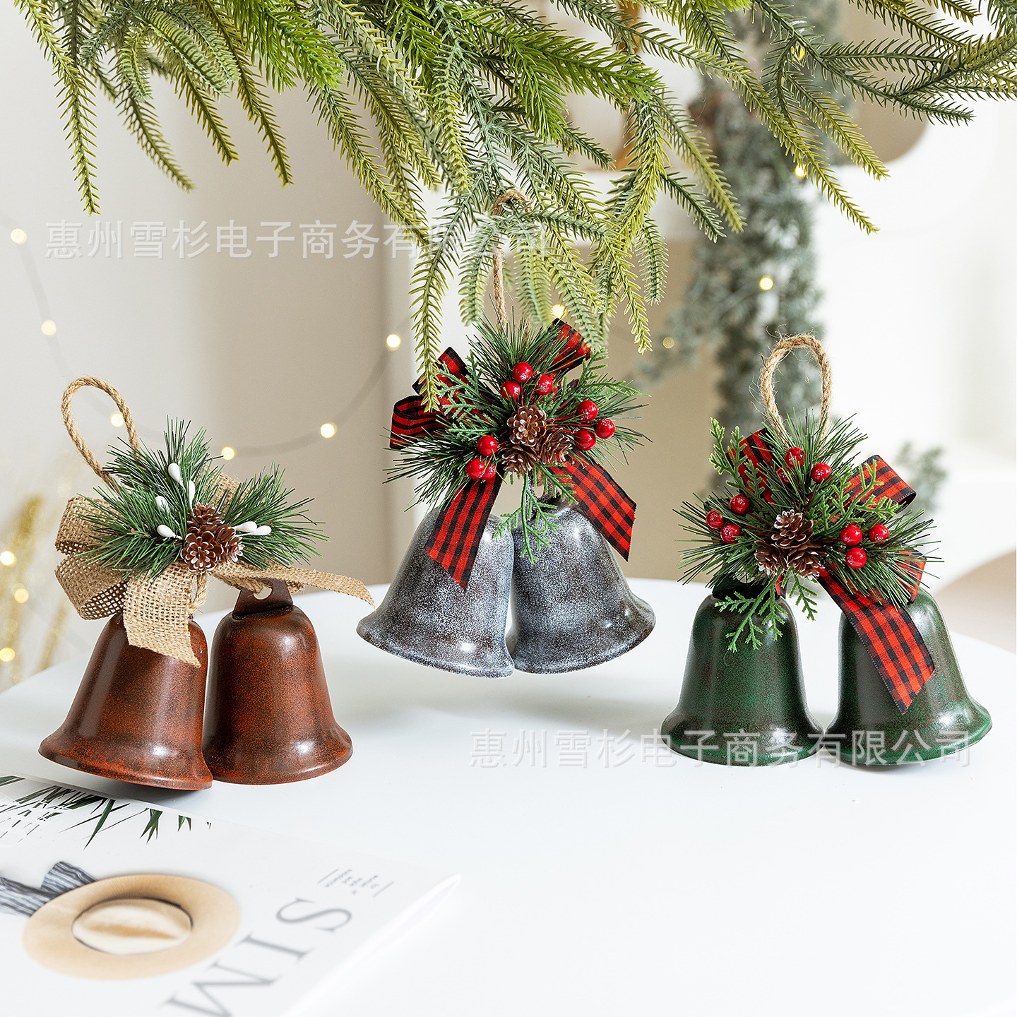 クロスボーダークリスマスツリーハンギングオーナメントレトロリボンベルペンダントアイアンオープンウィンドチャイムクリスマスデコレーションアレンジメント