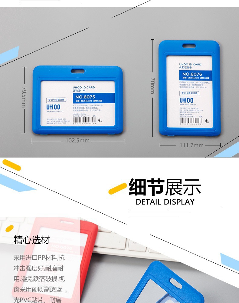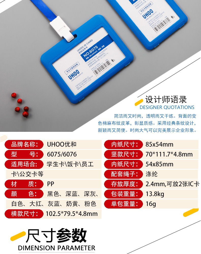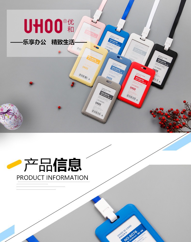 优和6076工作证卡套学生校园带伸缩扣挂绳塑料饭卡门禁胸牌定制