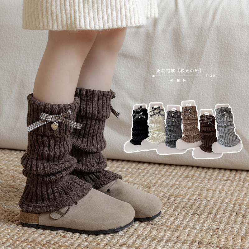 靴尚棉女童袜套复古格子蝴蝶结堆堆袜lolita毛线针织保暖小腿腿套