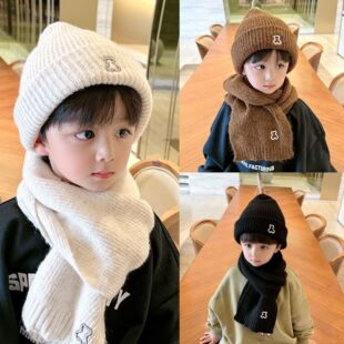 韓国系子供帽子秋冬保温耳保護帽子アルファベット洋気赤ちゃんファッションニット帽子毛糸帽子