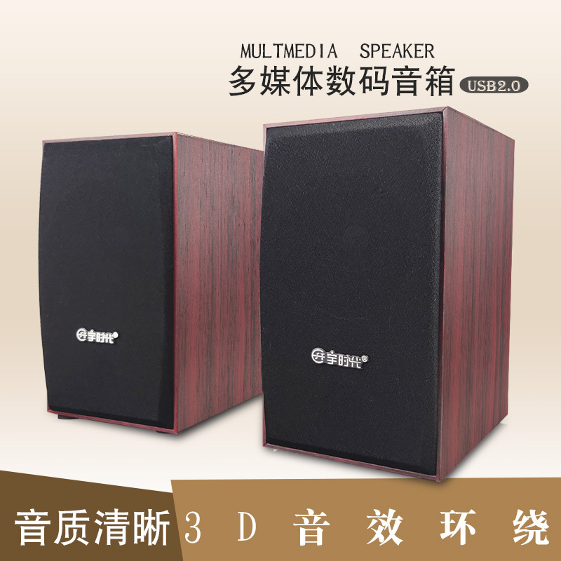 D092パソコン木製USBオーディオノートパソコンステレオスピーカーパソコン2.0スピーカー卸売り販売促進