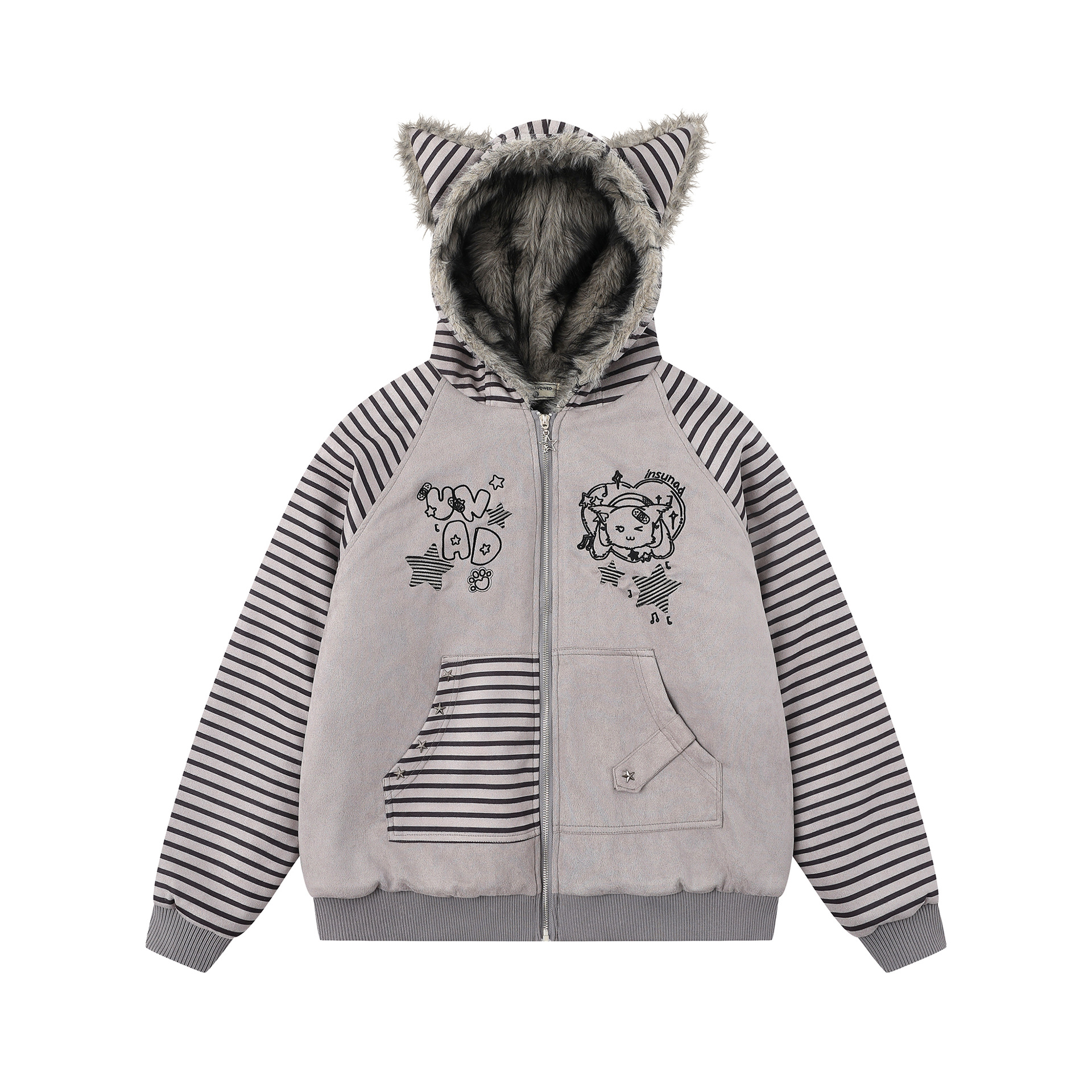 纵驰衣社可爱猫咪耳朵加绒连帽卫衣秋冬季宽松二次元亚文化棉服