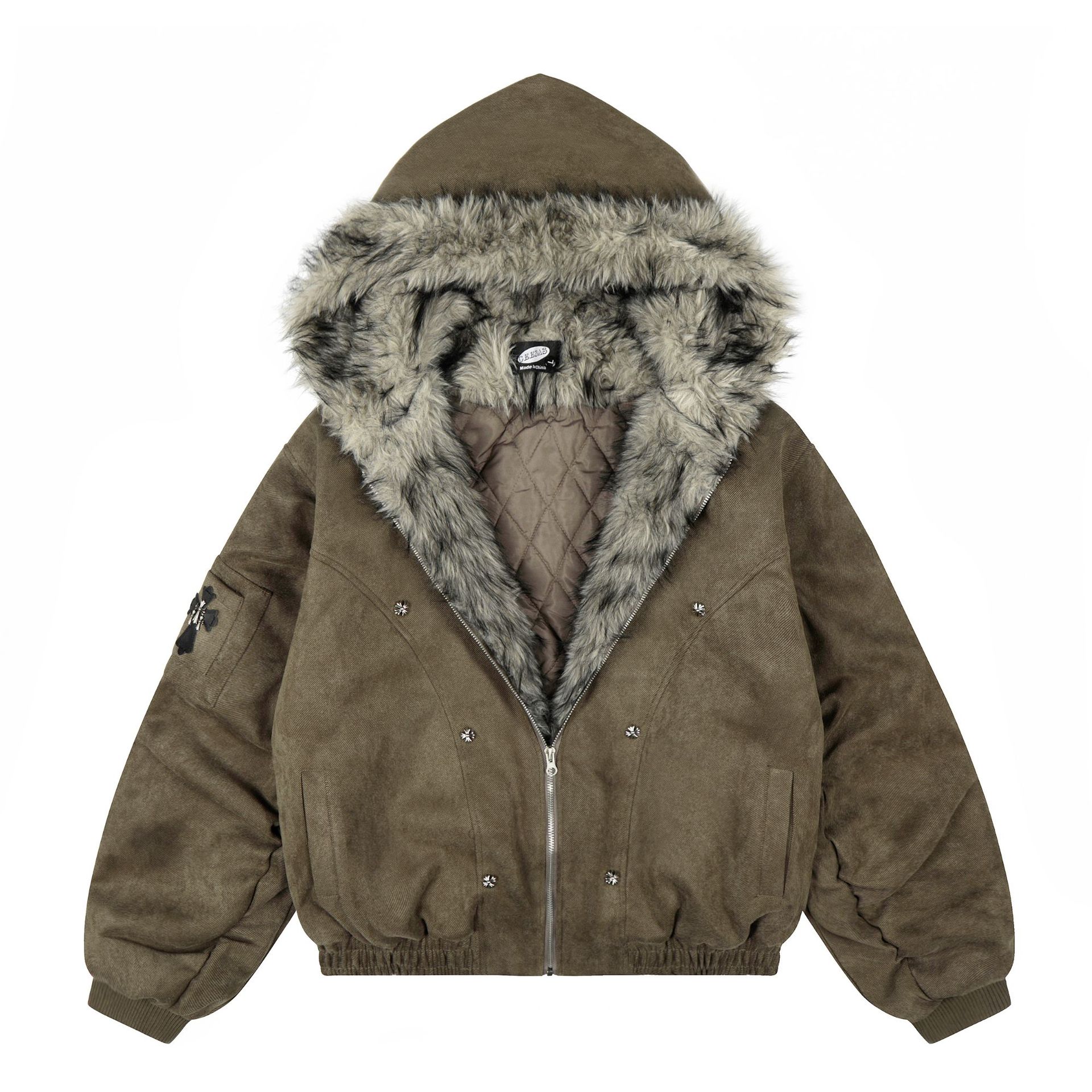 纵驰衣社美式复古座山雕毛领加厚棉服男女2025冬季情侣宽松外套