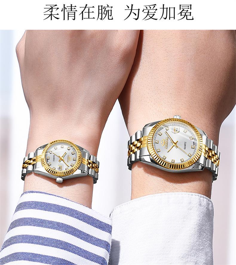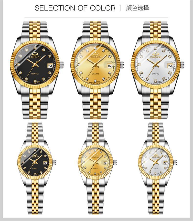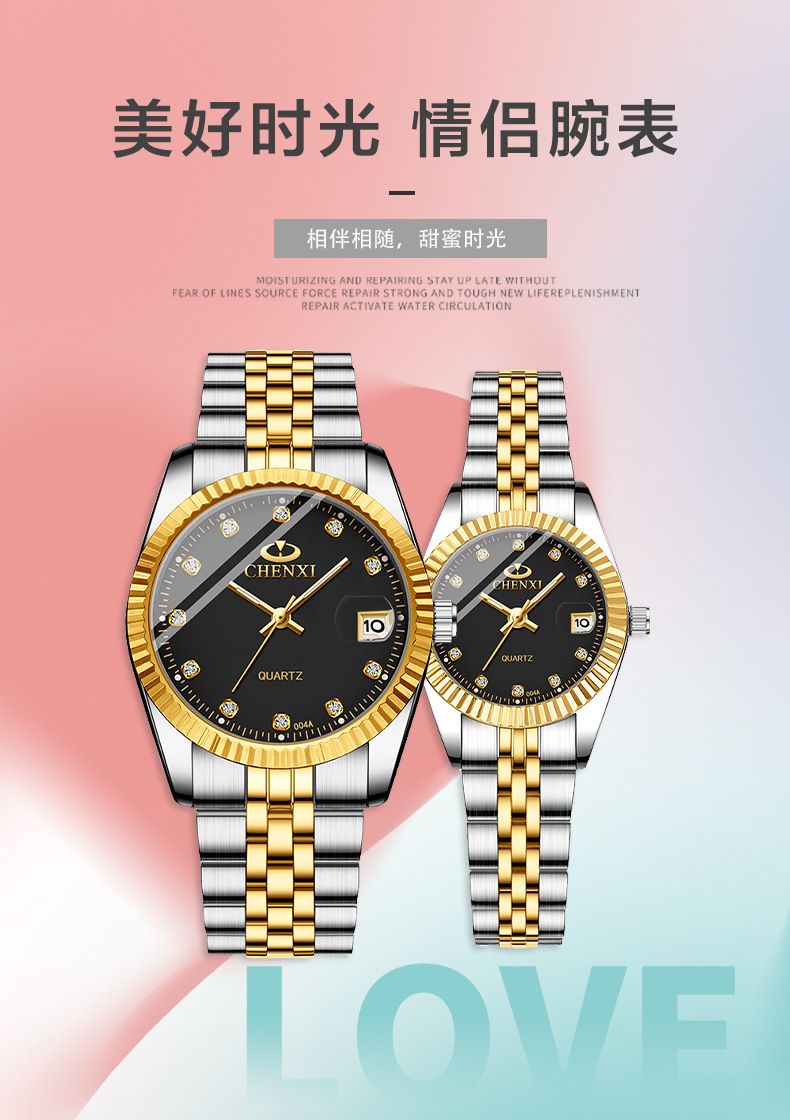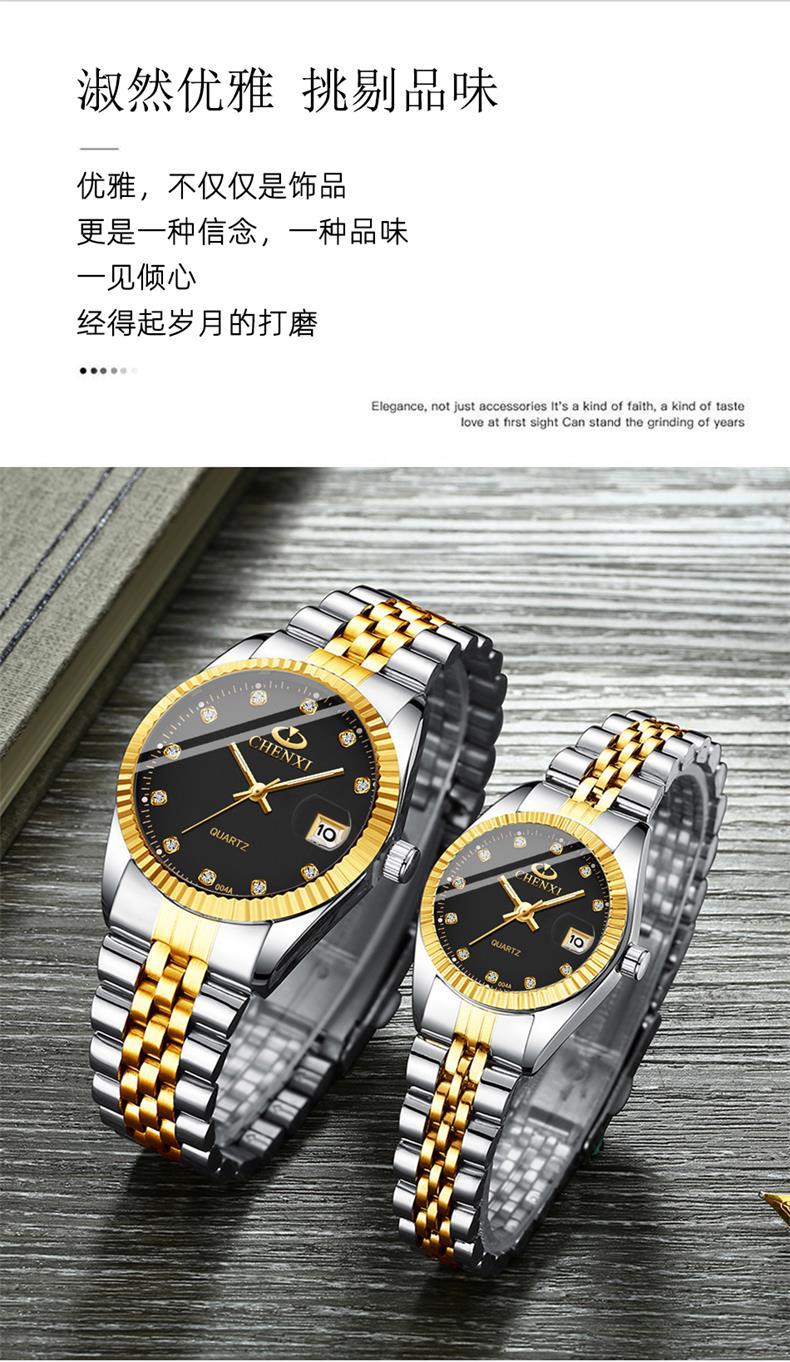 ログ新型ビジネスカップルカレンダー男性女性腕時計爆発金対外貿易国境を越えた石英帯ドリル鋼帯防水