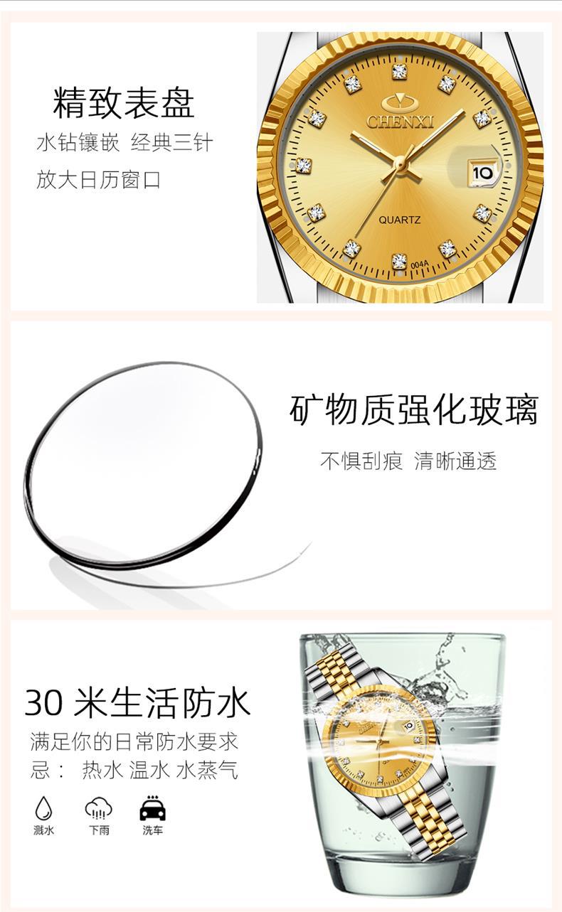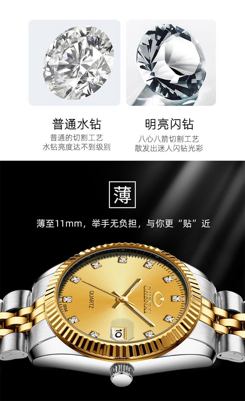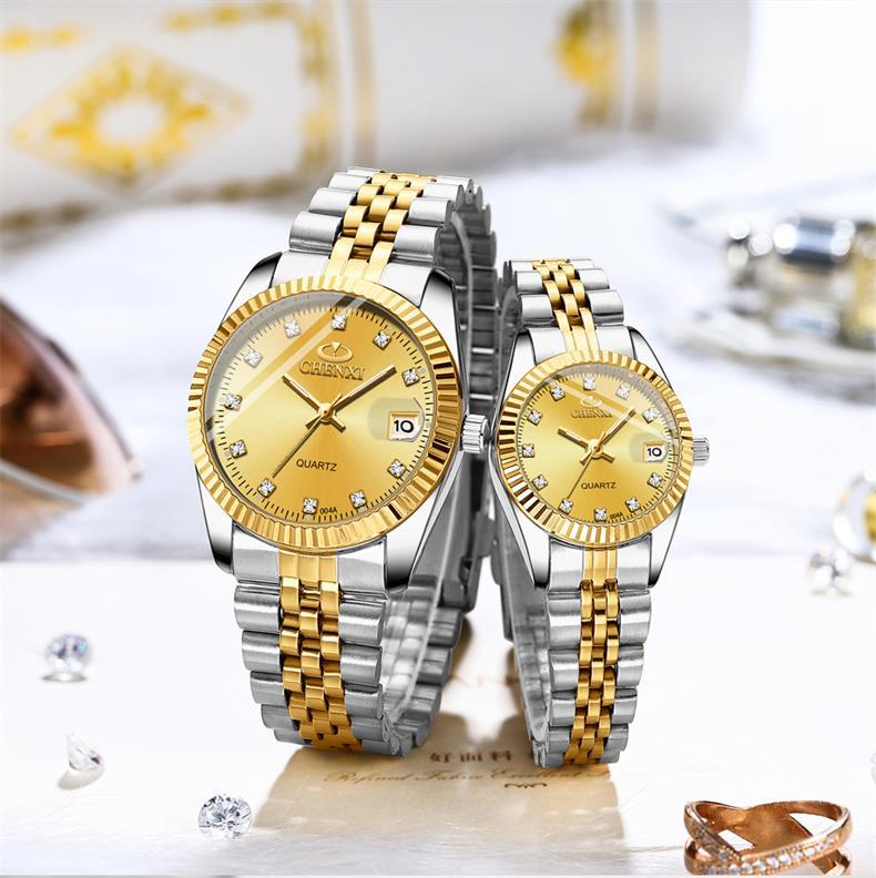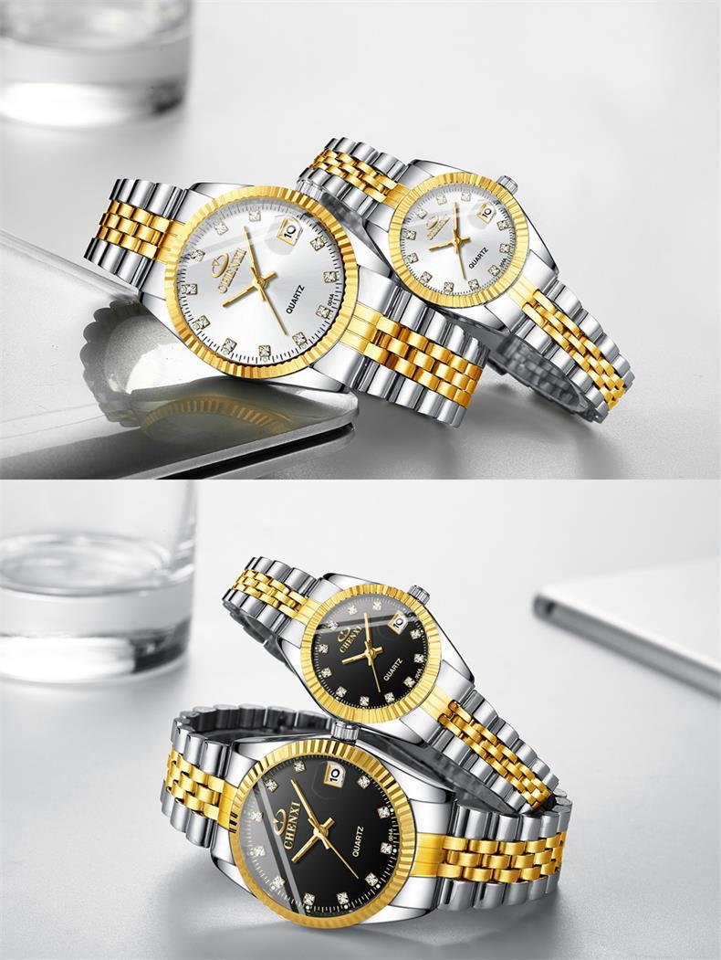 ログ新型ビジネスカップルカレンダー男性女性腕時計爆発金対外貿易国境を越えた石英帯ドリル鋼帯防水