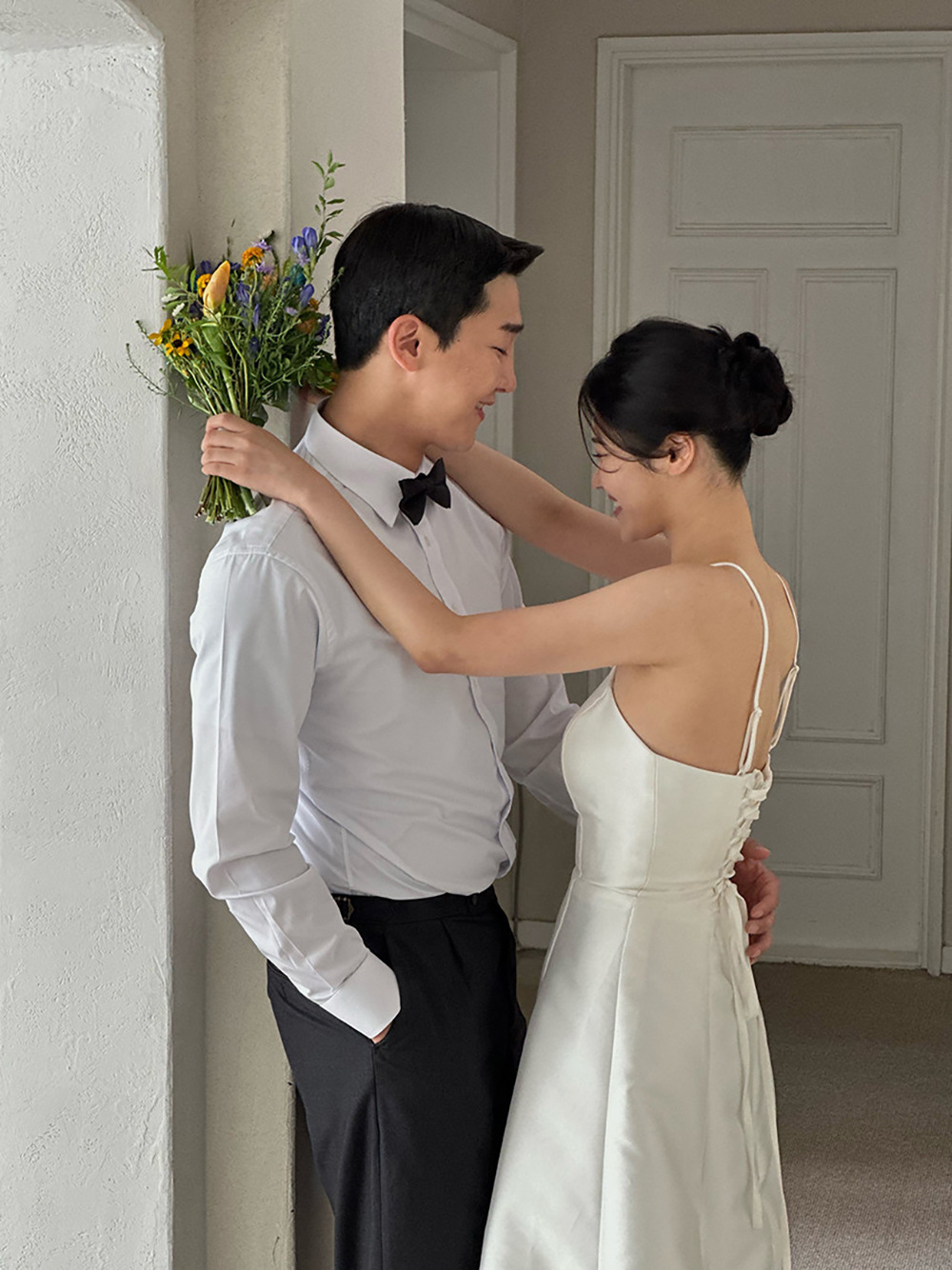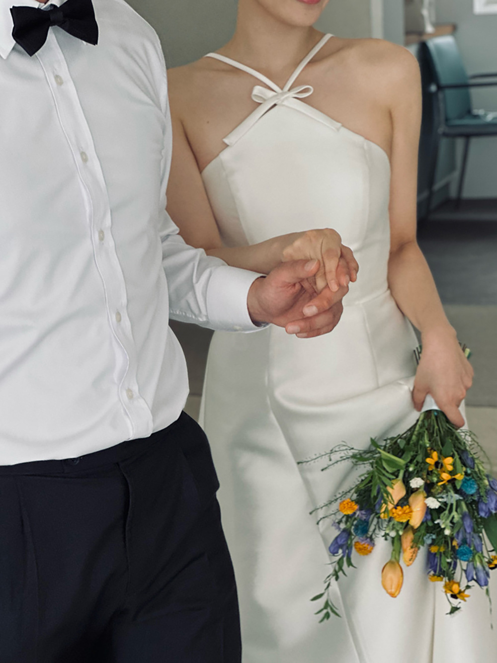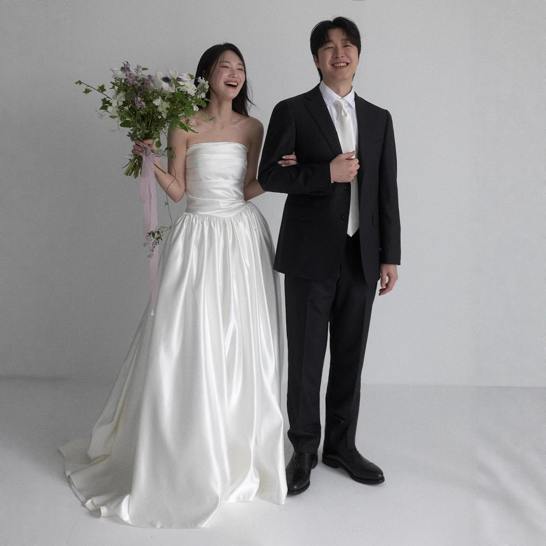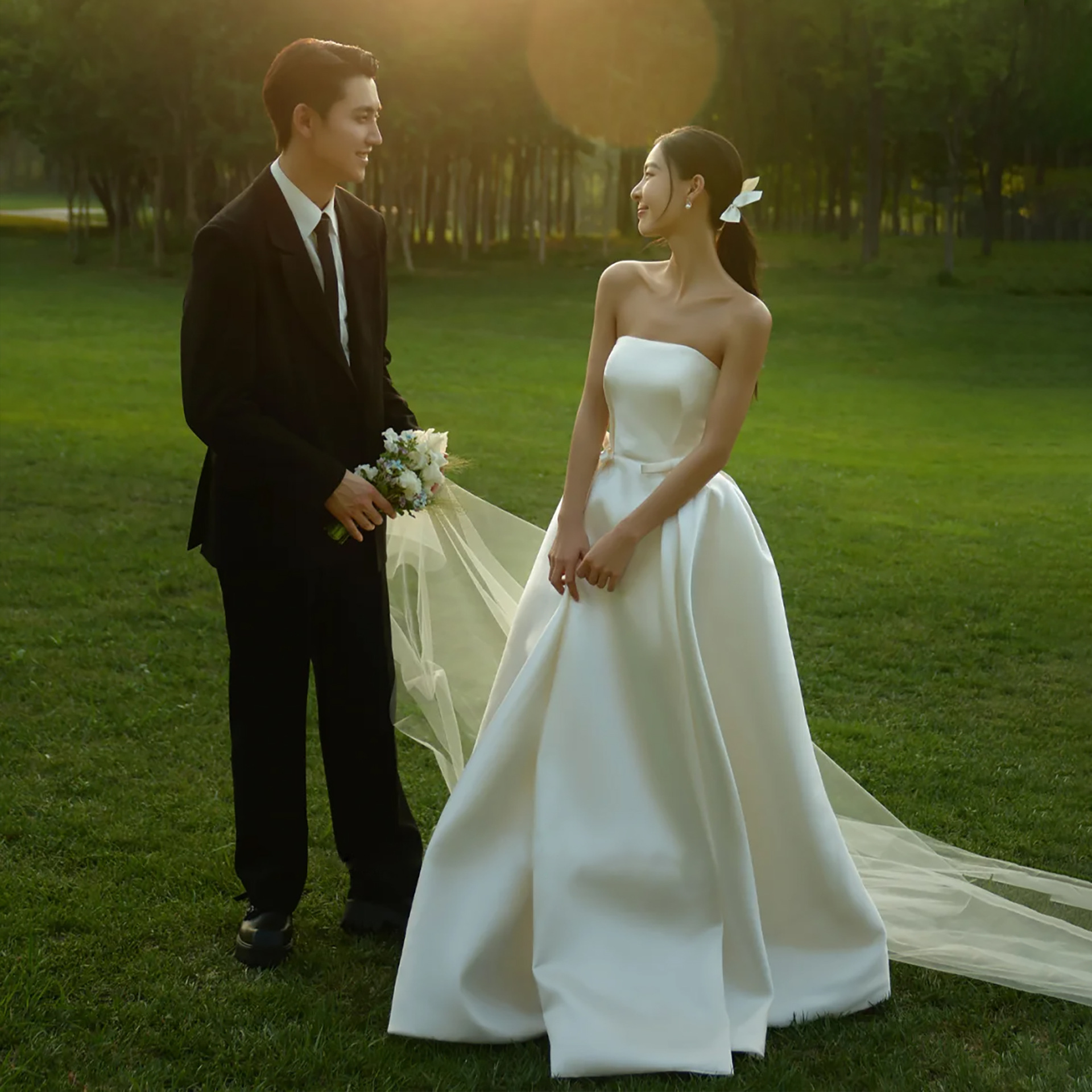 韓国式の軽いウェディングドレスはシンプルで高級感があります。