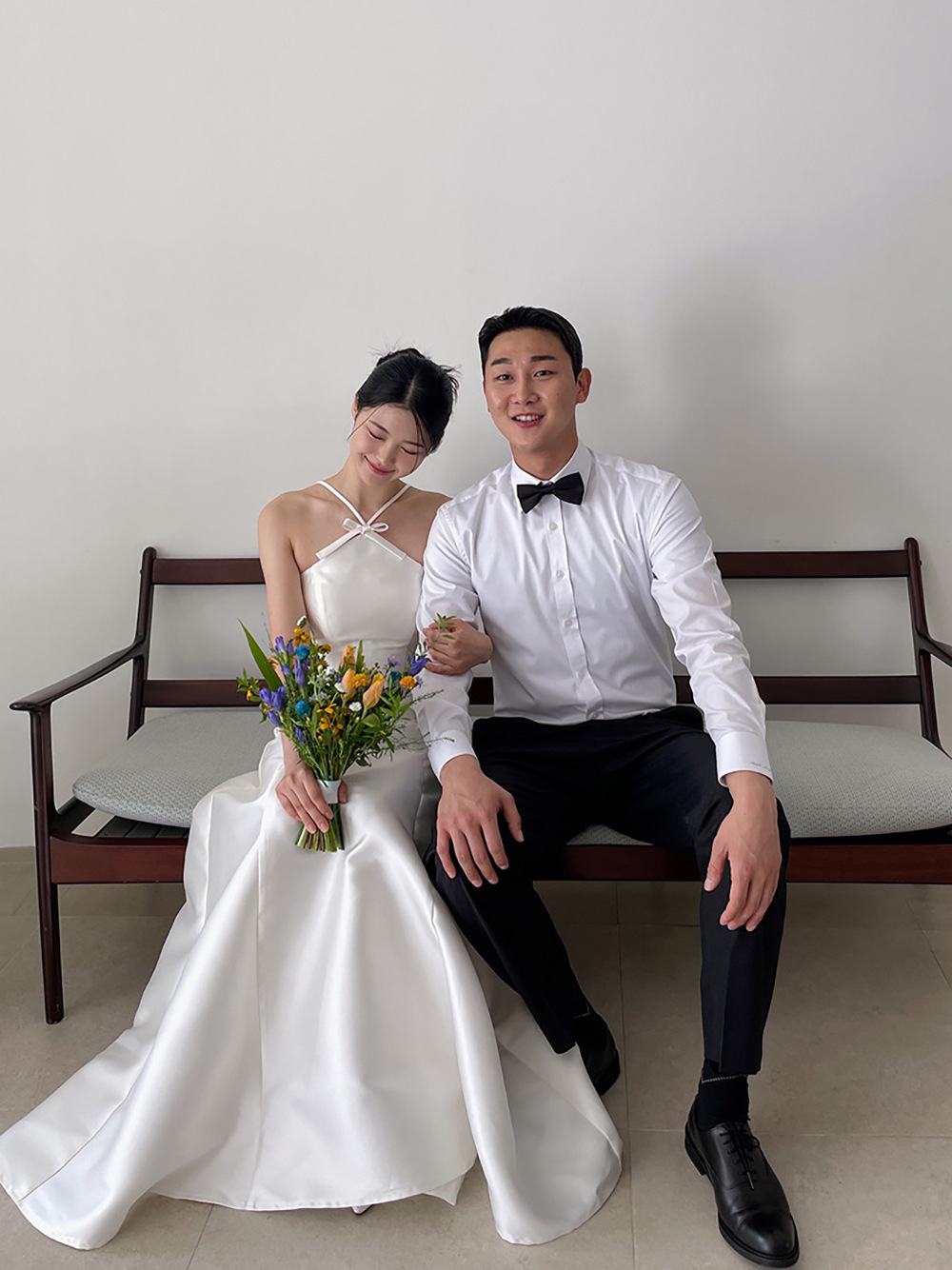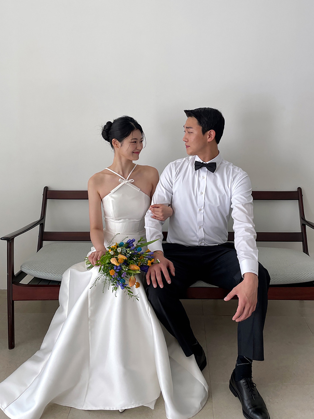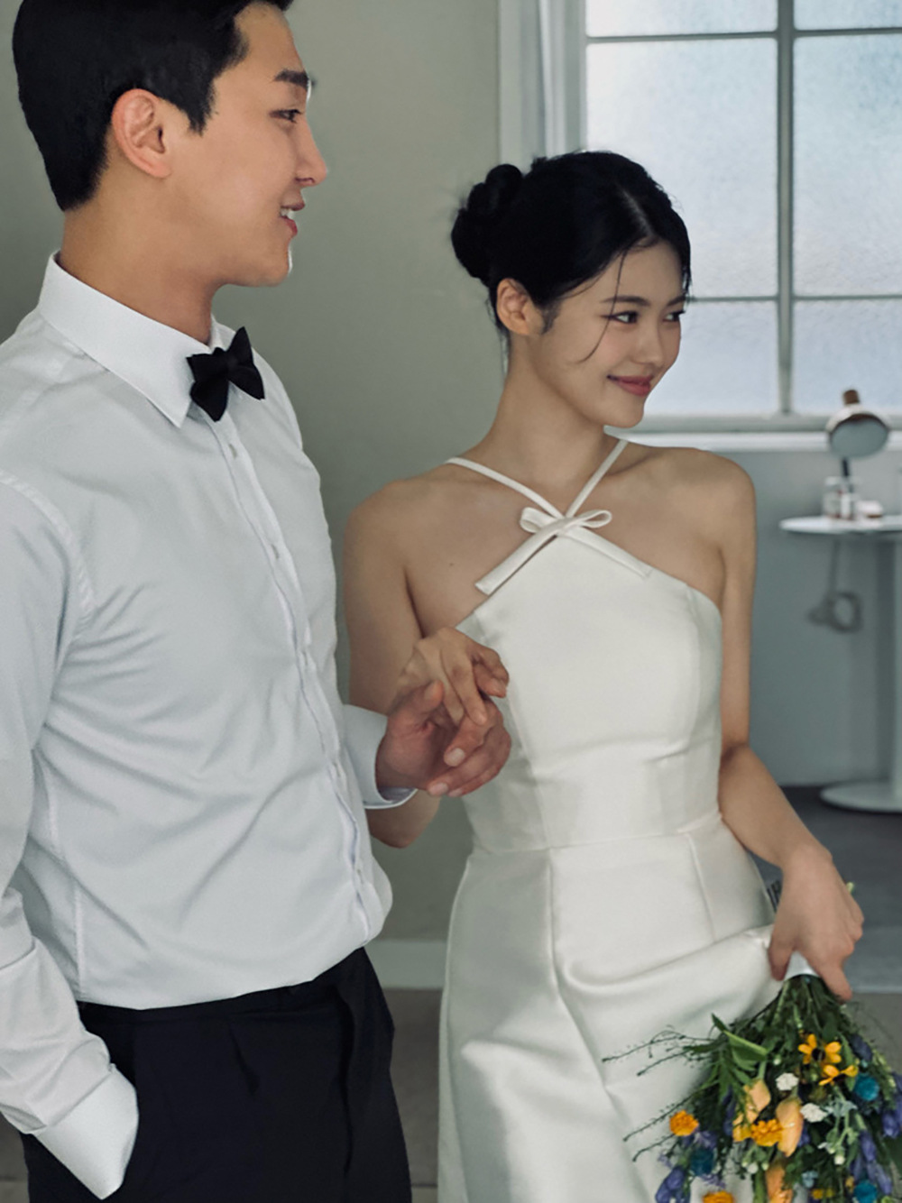 韓国式の軽いウェディングドレスはシンプルで高級感があります。