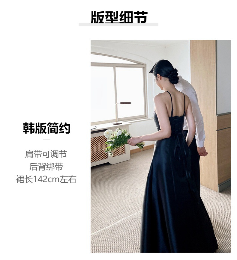 夜のドレスは胸を拭きます。黒い韓国系はシンプルで高級感があります。