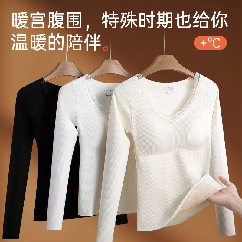 秋冬新款V领蕾丝保暖背心一体固定杯无痕免穿文胸软支撑保暖马甲