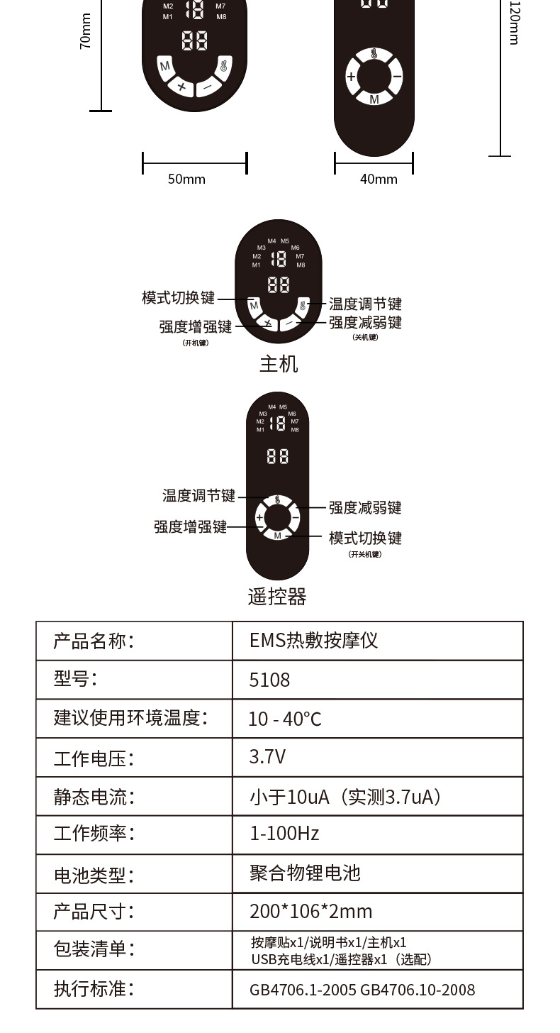 パッキングリスト 本体リモコンマッサージパッチ充電コード説明書