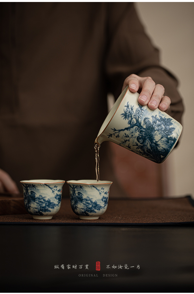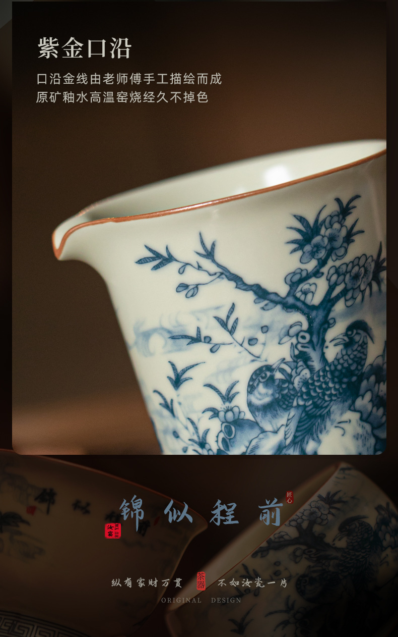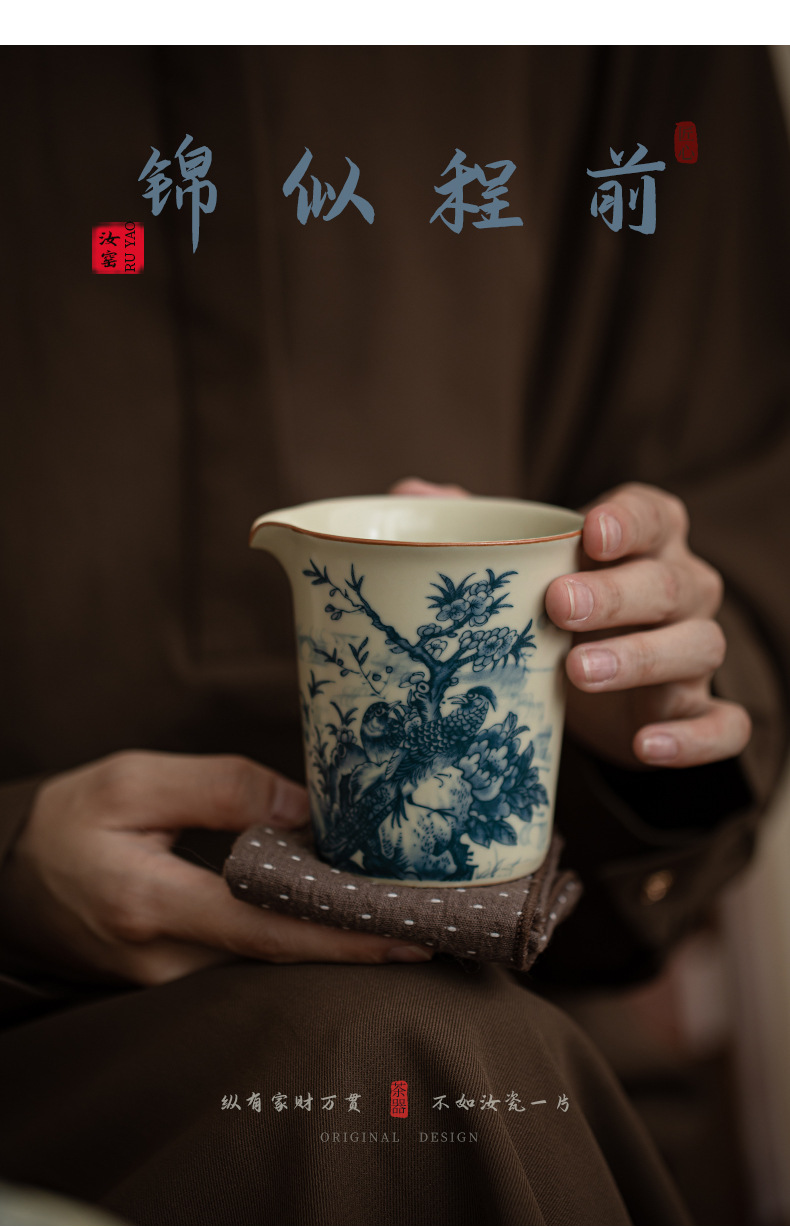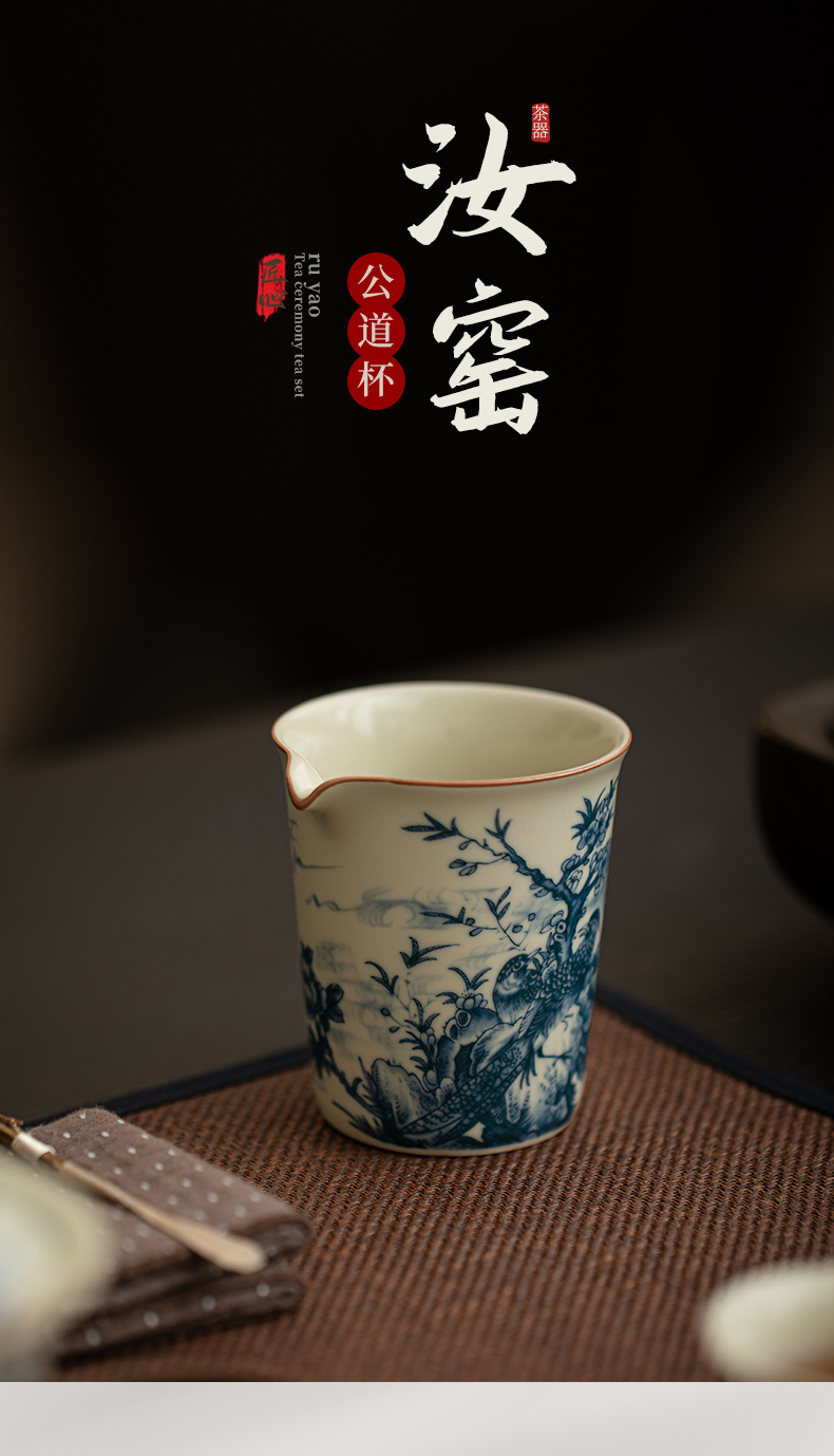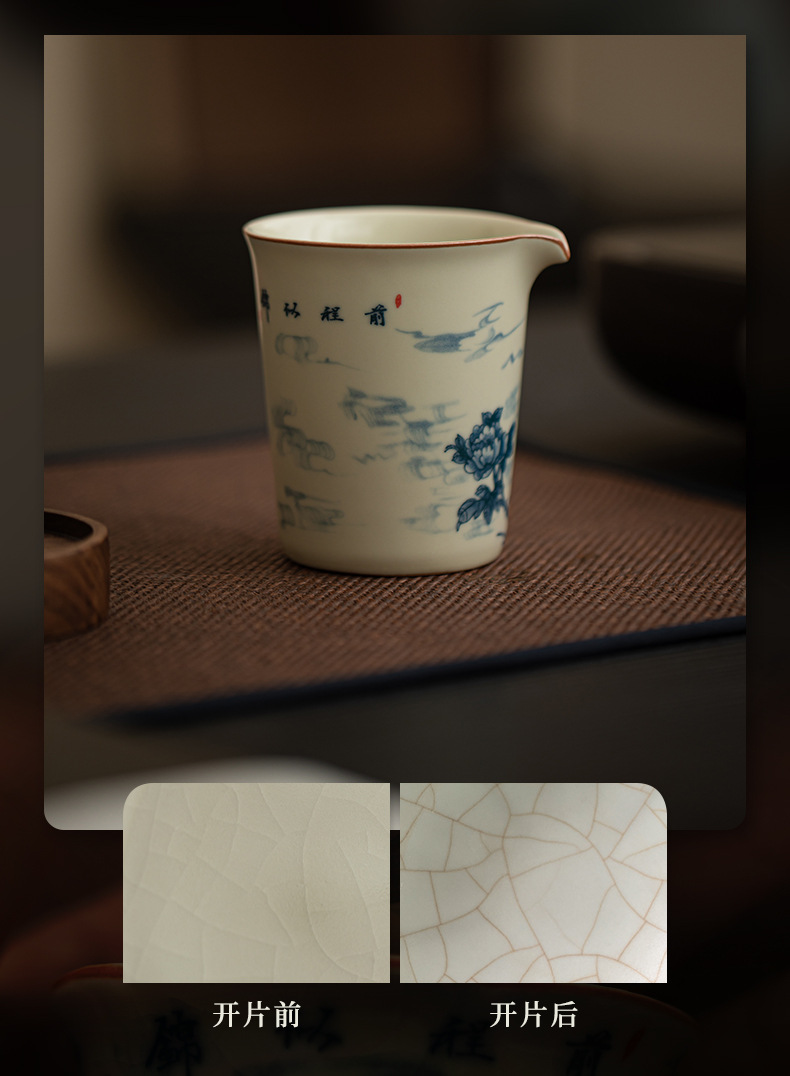 模造古汝窯シリーズ陶磁器公道杯蝉翼開片金糸鉄線は茶器公杯礼箱を養うことができる
