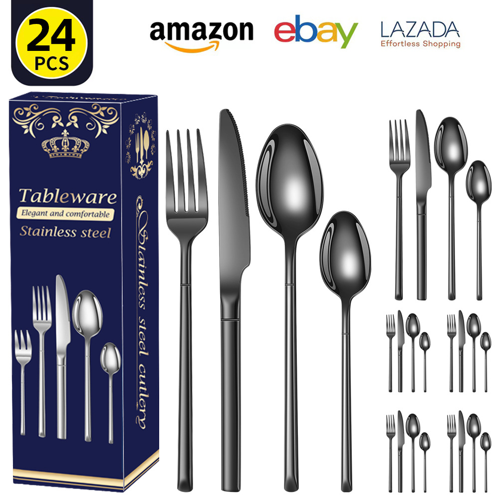 国境を越えたアマゾン騎士ステンレス食器24点セットナイフフォークセット洋食ステーキナイフフォークスプーンセット