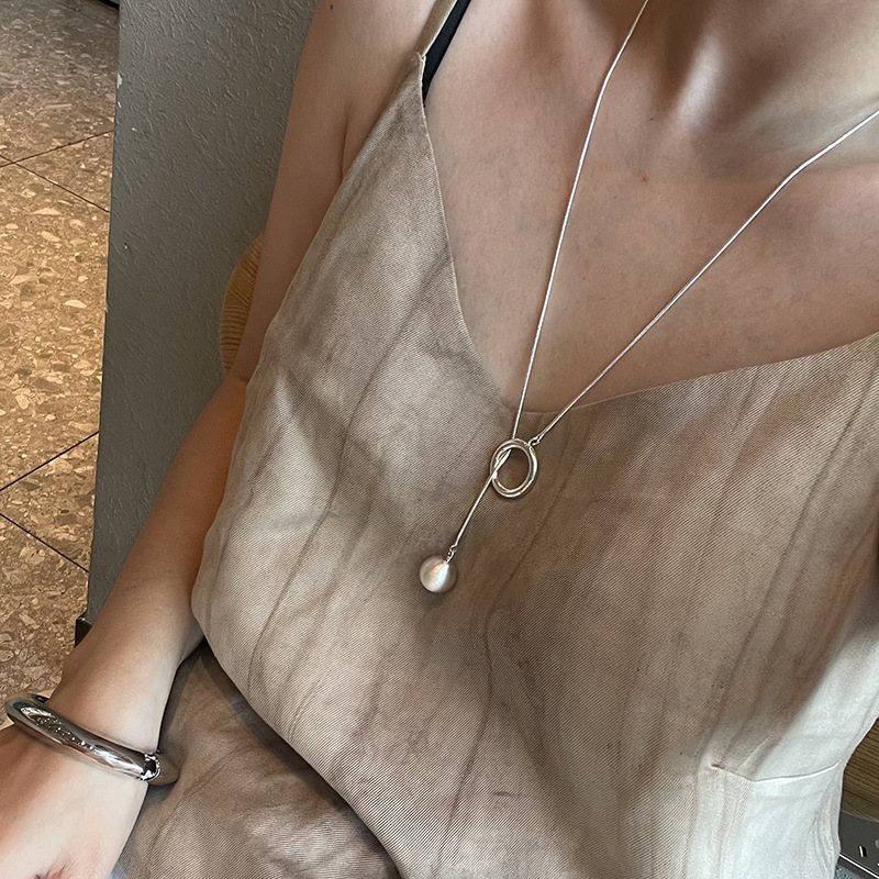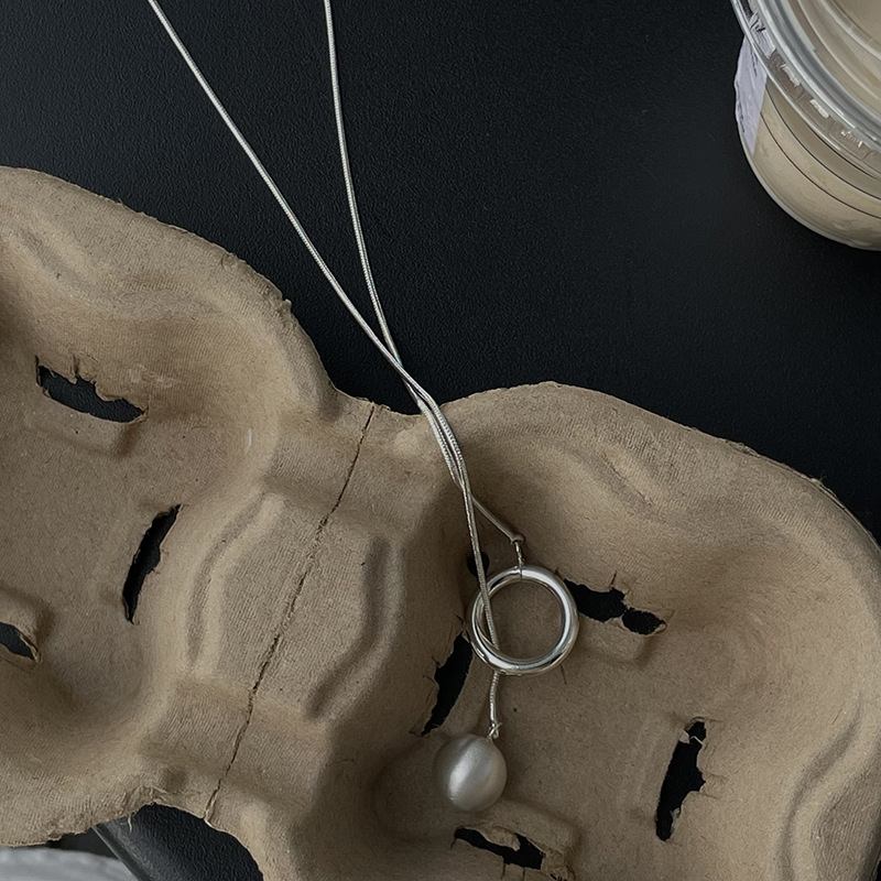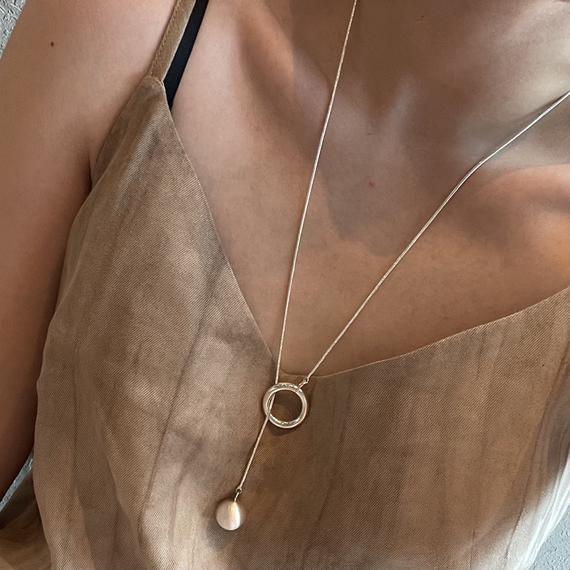 925 シルバーメッキプルアウトパールロングセーターチェーンネックレスレディースファッションシンプルなニッチデザインインスタイルパーソナライズされた鎖骨