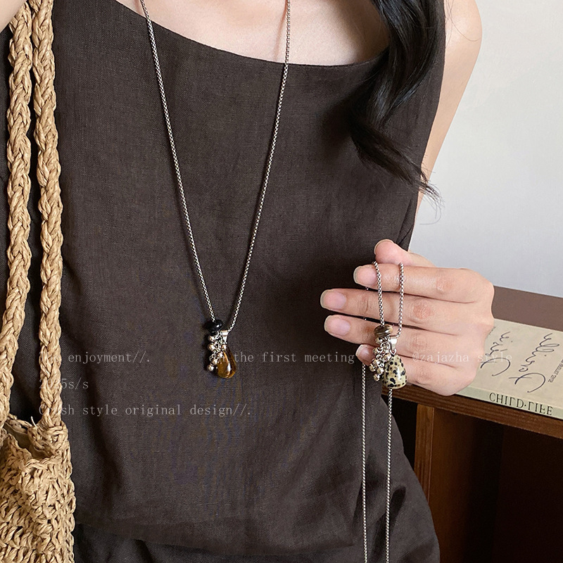 钛钢项链博主同款虎眼石葡萄串吊坠小众高级感长款毛衣链可调节女