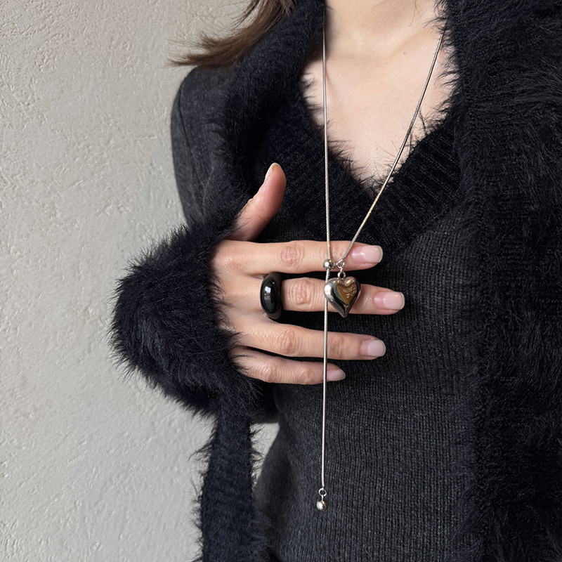 チタン鋼は色が落ちない長いネックレスがシンプルな銀色の愛のペンダントの小衆の高級感の秋冬の気質のセーターのチェーン