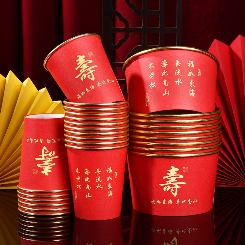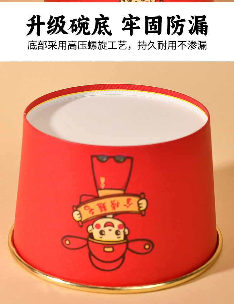 使い捨ての寿の字の紙の碗の大きい赤色は厚いお祝いの寿の宴会の酒席の大容量の食器の箱を厚くして誕生日の家庭を過ごします。
