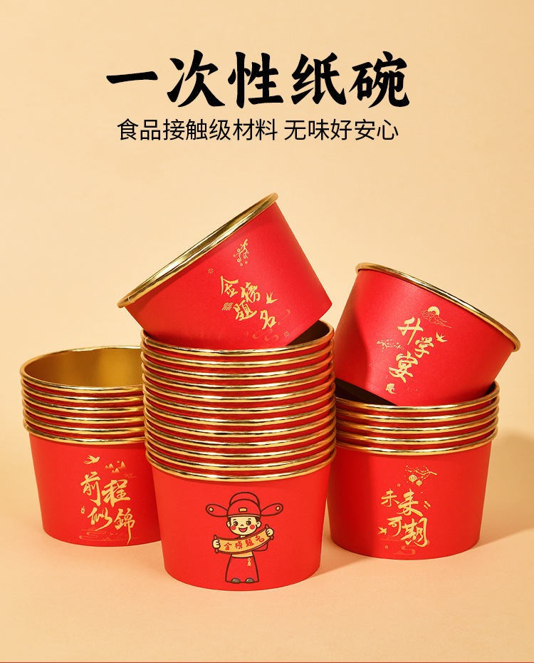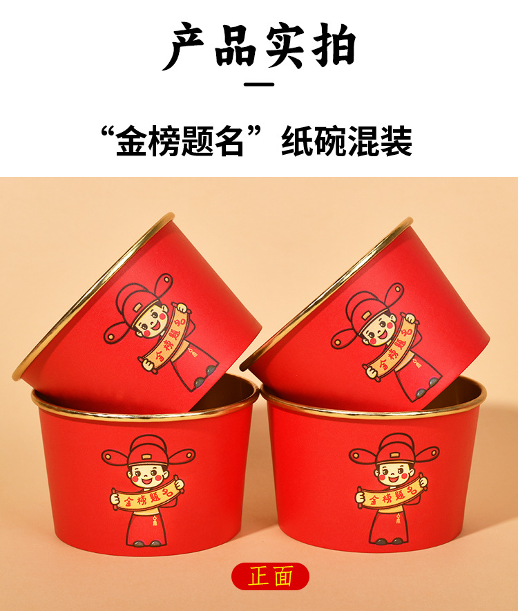 金榜タイトル特厚金箔色使い捨て紙碗ホテル昇学宴食器謝師宴酒席用品円碗