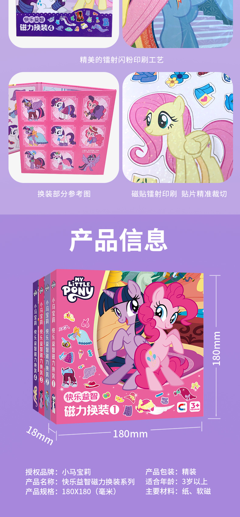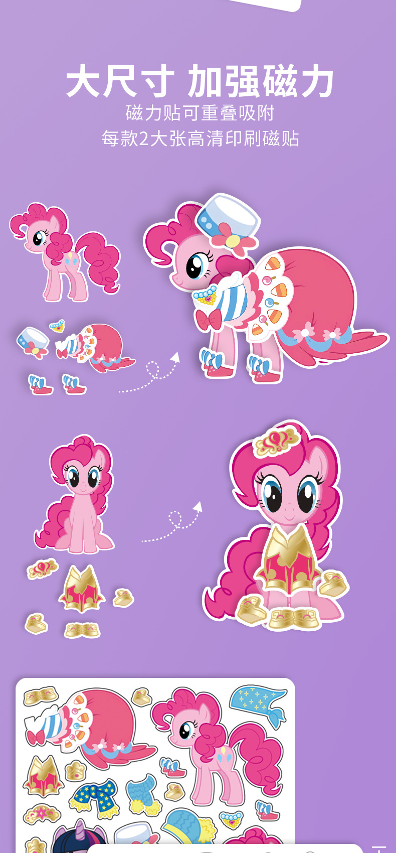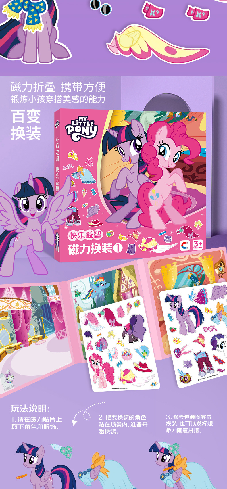 正規版クロミポニー磁気静かな本新作マグネットステッカー女の子楽しいパズルマグネットdiy着せ替えステッカー