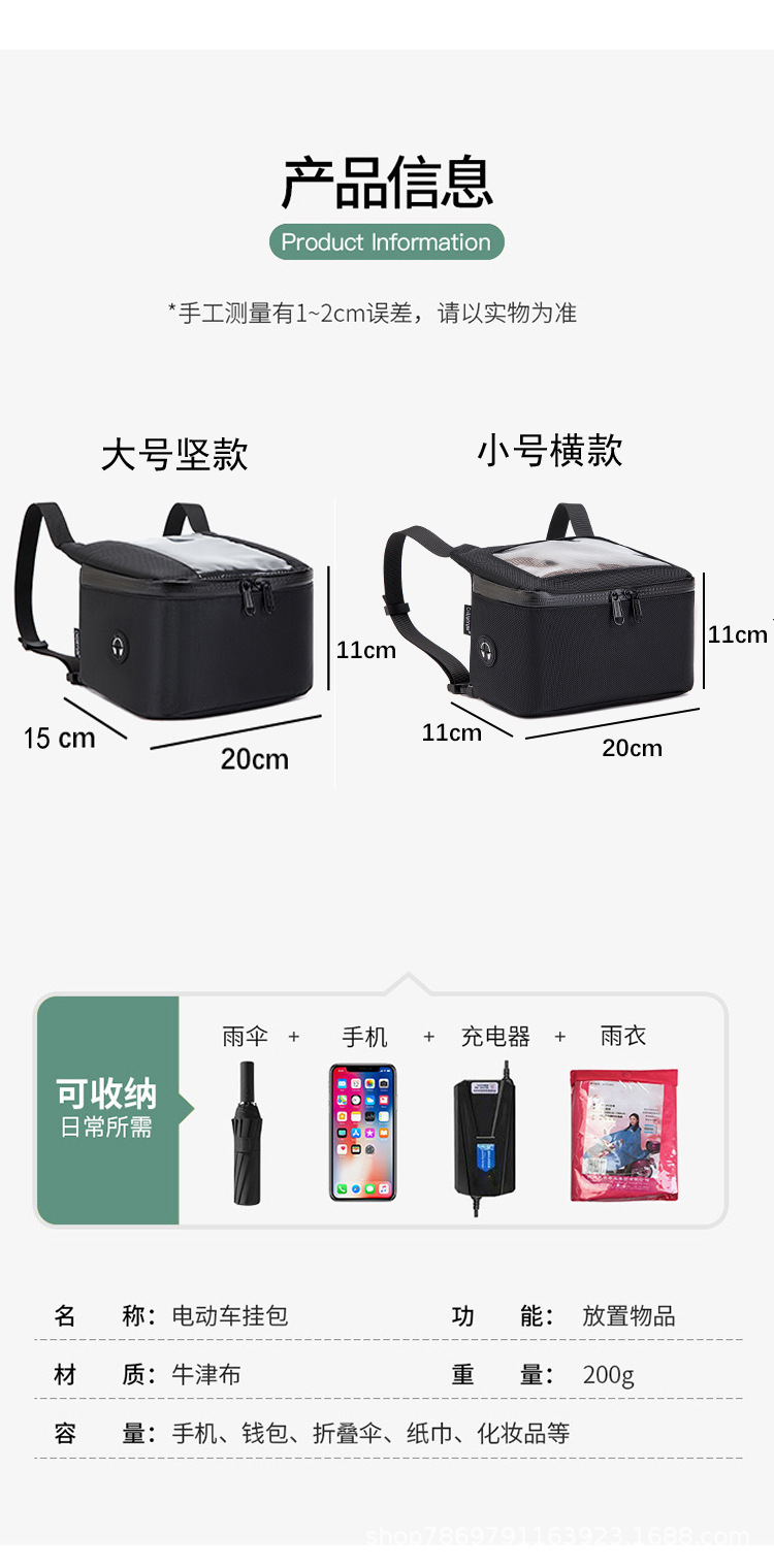 通用型电动车前挂包防水手机车头包单肩运动挎包摩托车踏板收纳包