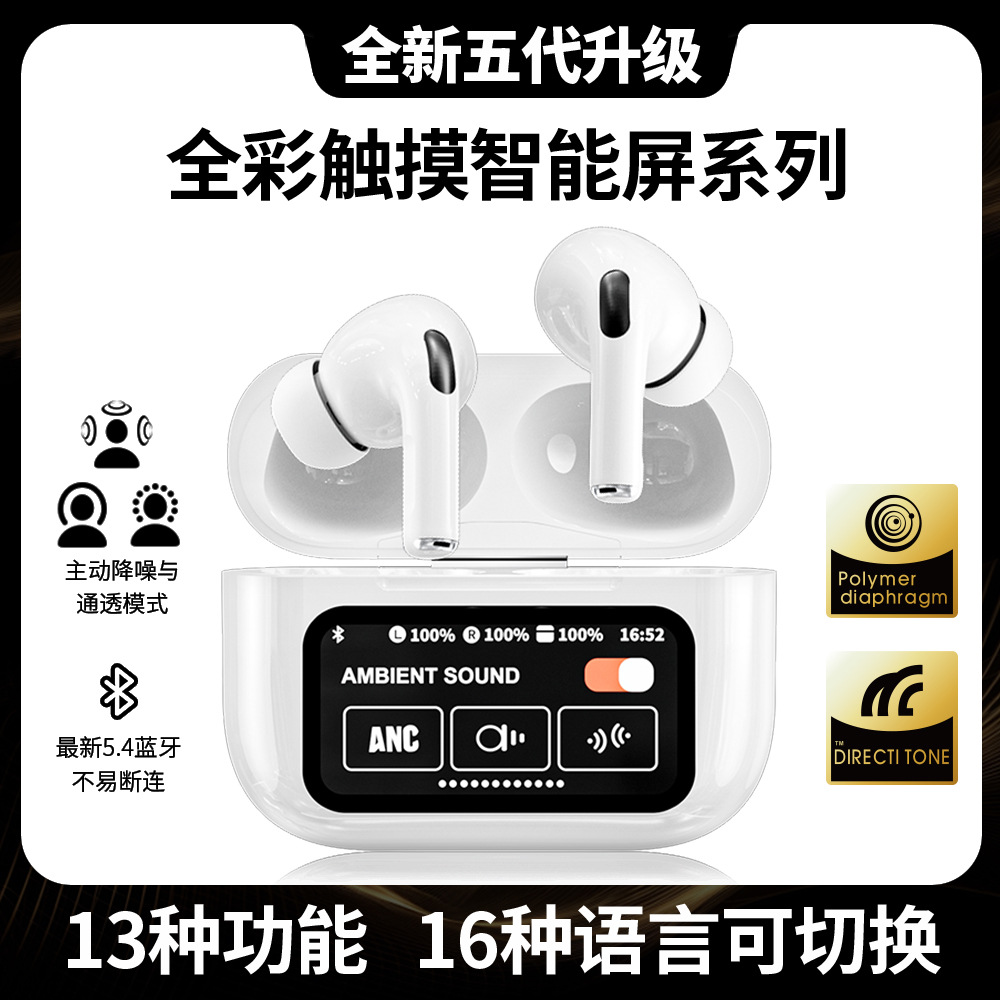 インイヤー第 5 世代 Huaqiangbei A9pro Bluetooth ヘッドセット ANC ノイズリダクション超長バッテリー寿命カラースクリーンタッチコントロールワイヤレスヘッドセット