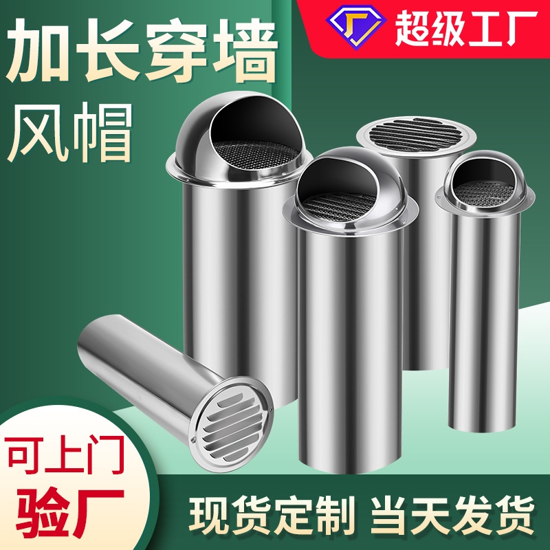 超長壁貫通ステンレスフード、外壁エアベント、排気口、排気口、フード、完成品丸型通気フード