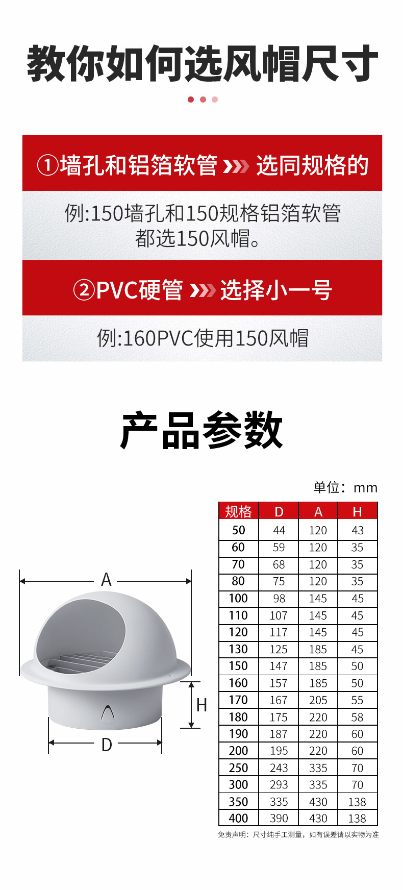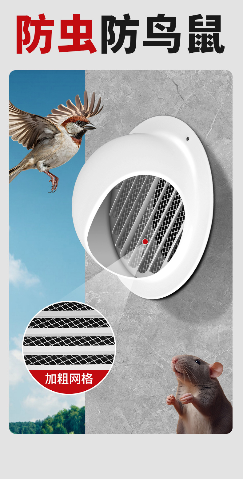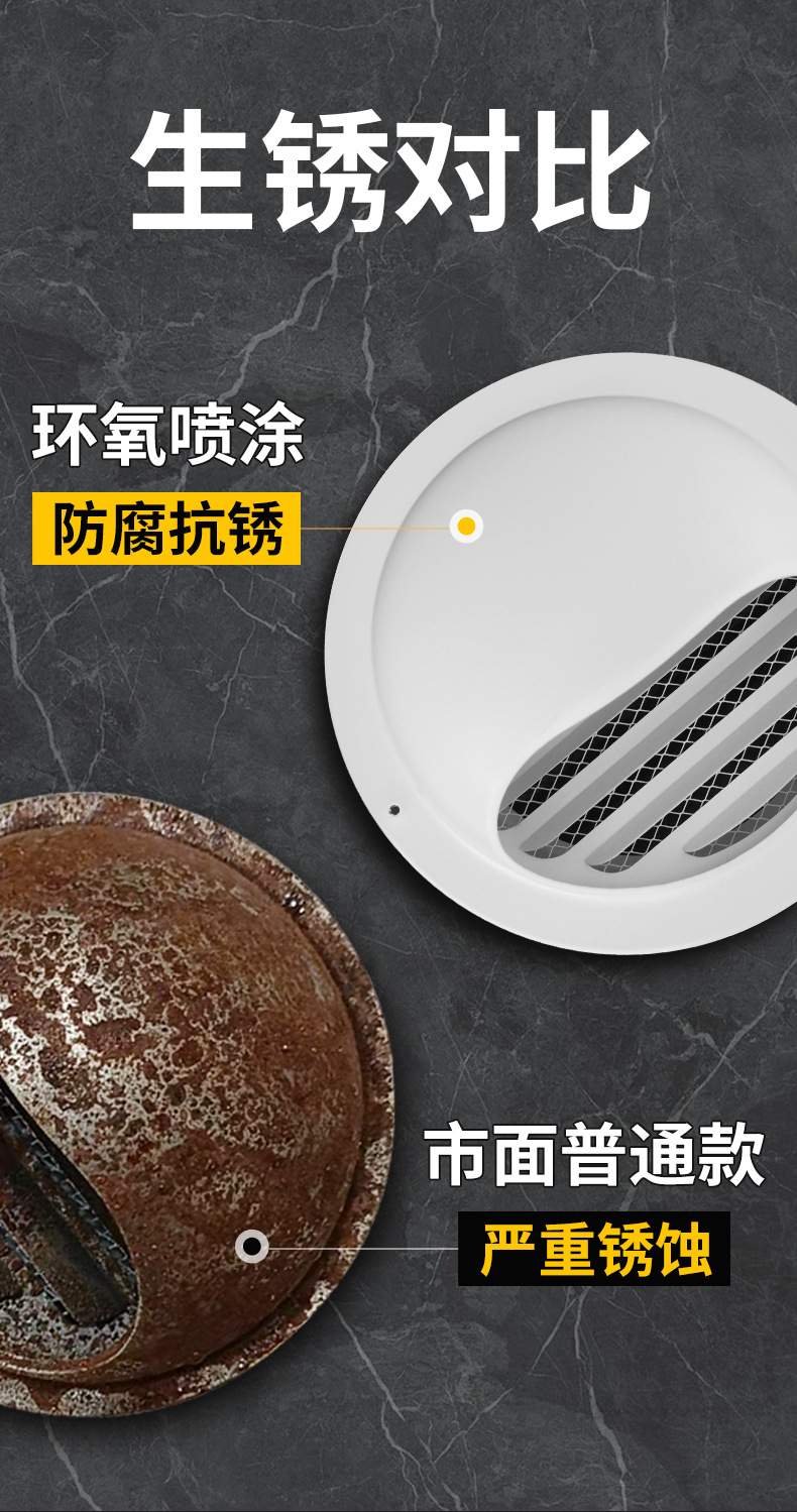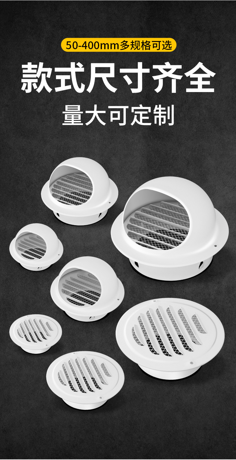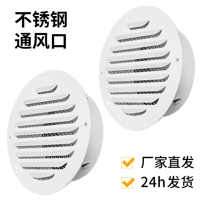 白色烤漆不锈钢风帽通风口平口平头带排风罩圆形格栅百叶盖透气帽