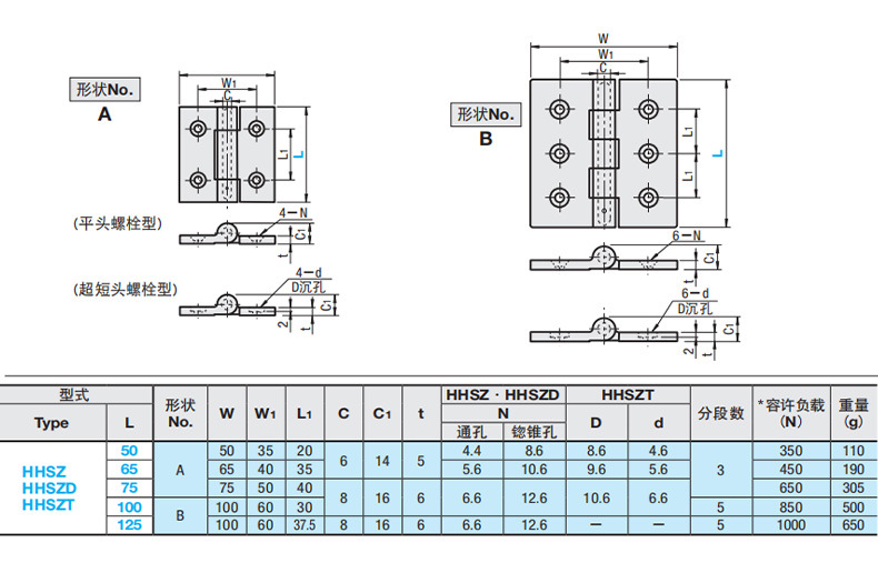 304ステンレス腰形穴蝶形ヒンジHFV01-47工業設備穴位置調節ヒンジSHPSNA6