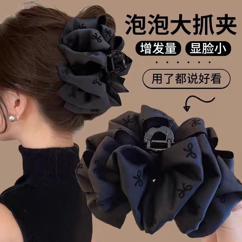 シンプルな蝶ネクタイのクリップ女性2024新高級感半髪クリップ後頭部サメクリップ中号クリップ