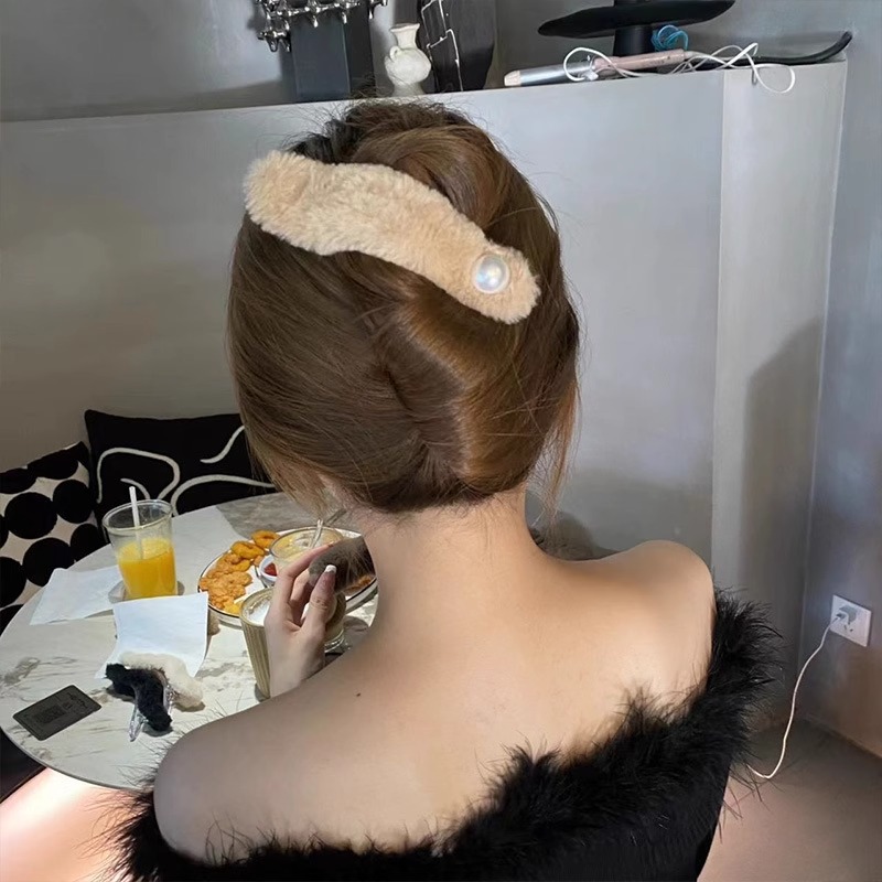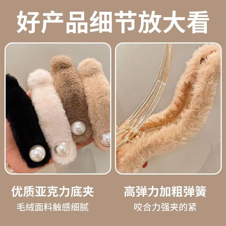 1#ぬいぐるみパールクリップ-オフホワイト,2#ぬいぐるみパールクリップ-カーキ,3#ぬいぐるみパールクランプ - ダークブラウン,4#ぬいぐるみパールクランプ-ブラック