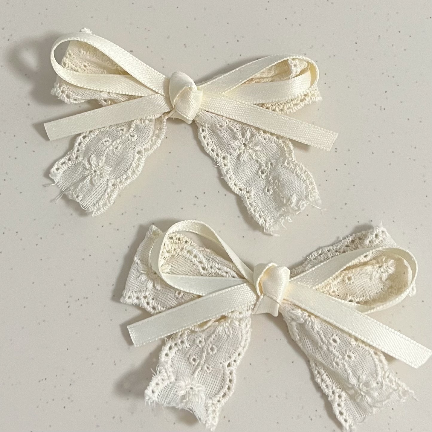ベージュ二重レース蝶結びdiy手作り材料頭飾り服装補助材料洞靴装飾卸売り部品