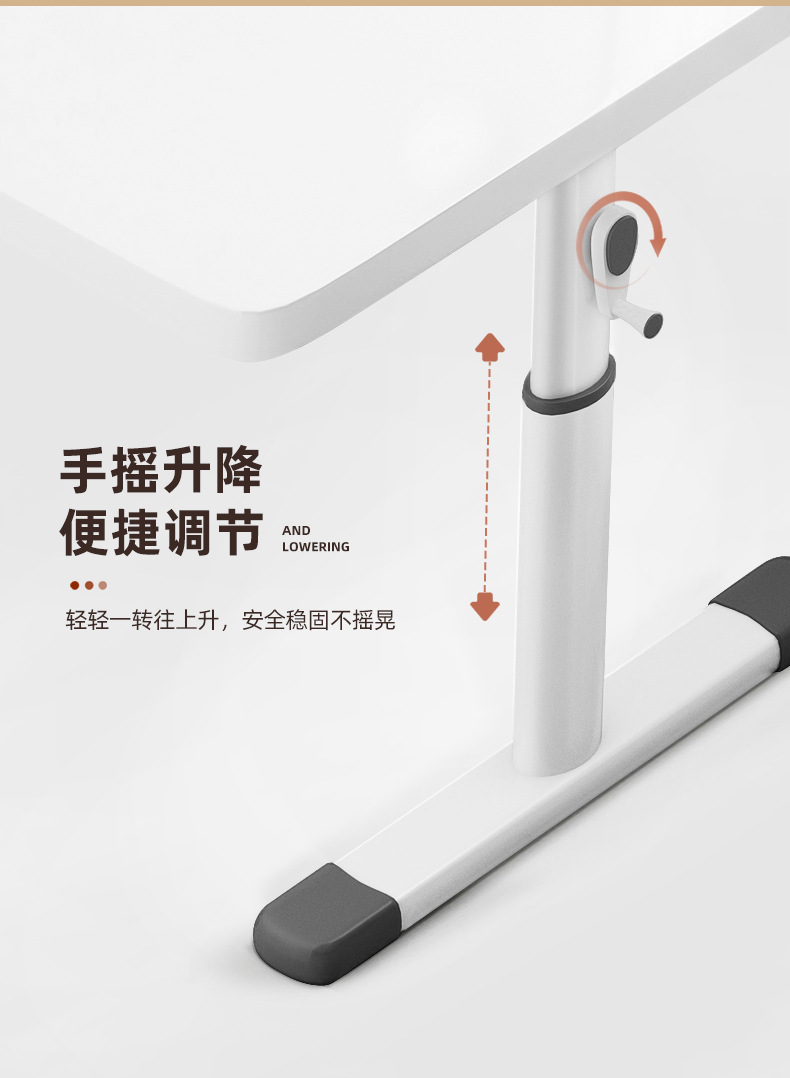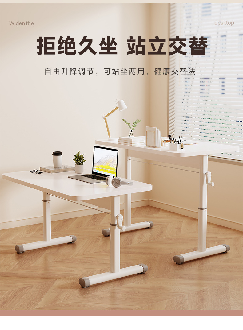 リフティングテーブルホームベッドルームデスクトップ学生学習デスクライティングオフィスデスク滑車付きハンドクランクコンピュータデスク