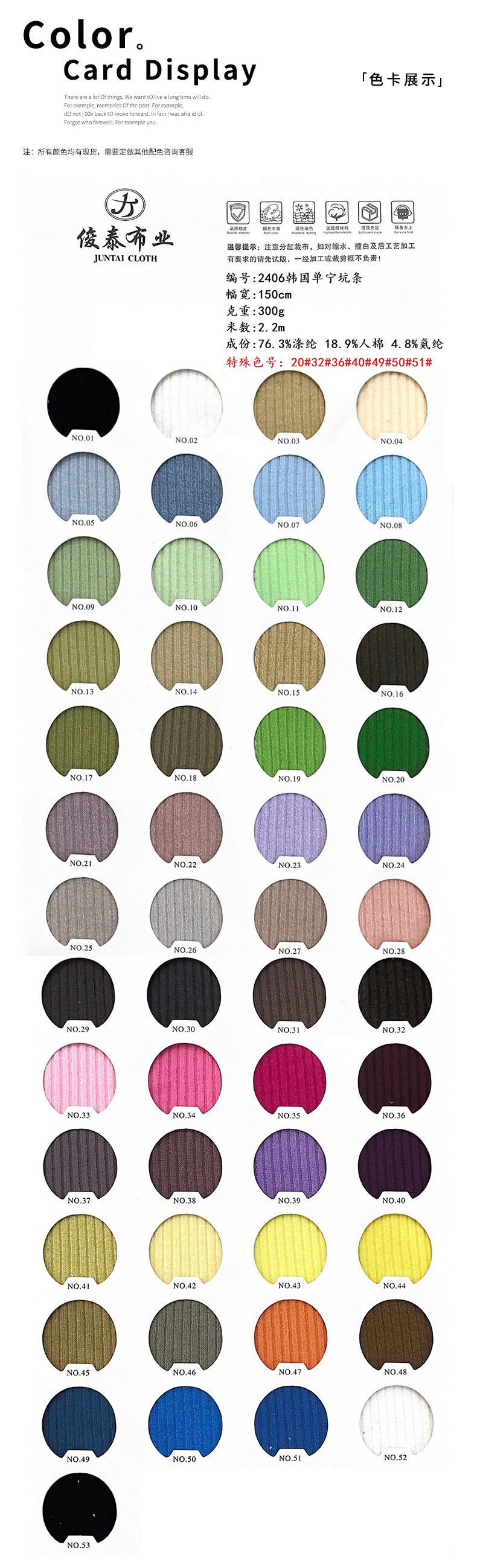 10*6リブ240gポリエステル人綿TR両面弾力筋感快適坑条ねじ生地現物