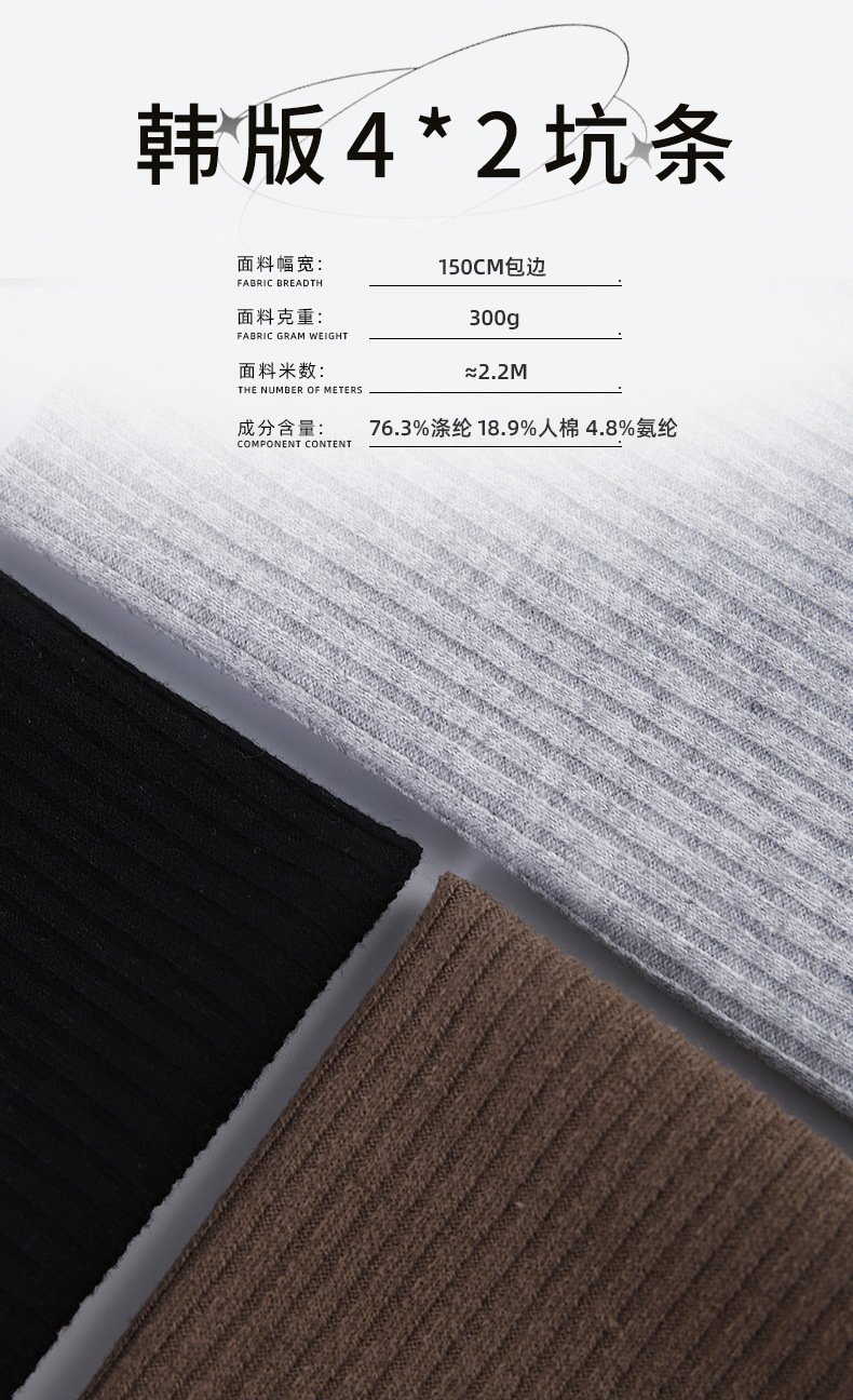 磨毛坑条300g人綿スパンデックス4*2坑条羅紋布保温弾力筋理感ニットリブ生地