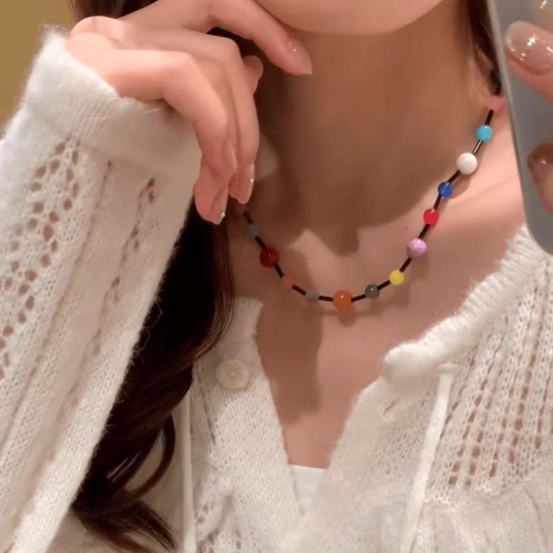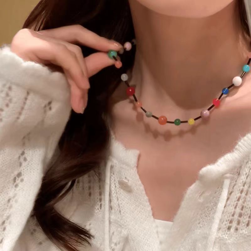 ドーパミンの新型カラー夏はビーズチェーンのネックレスinsギャルの小衆の個性をつなぎ合わせます。