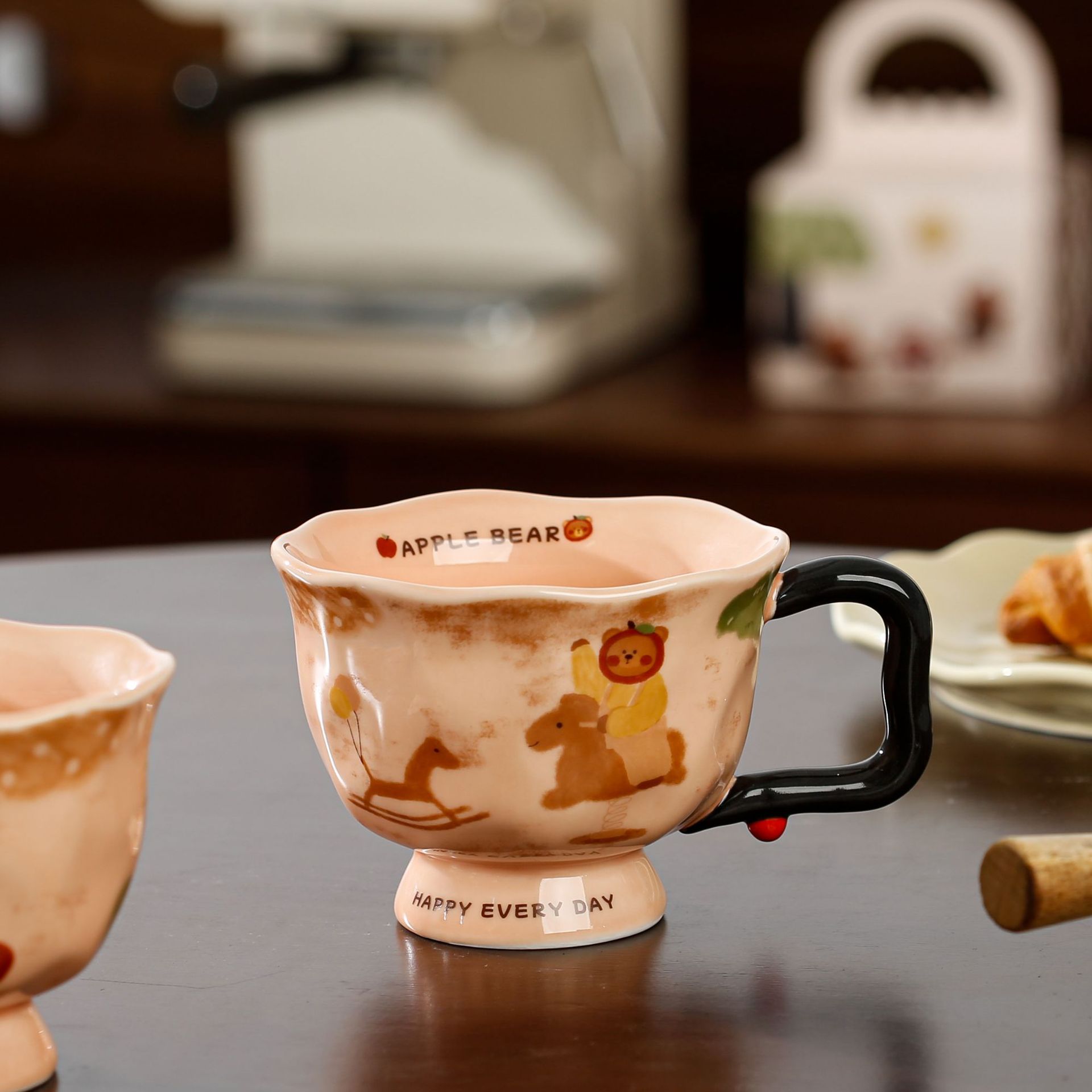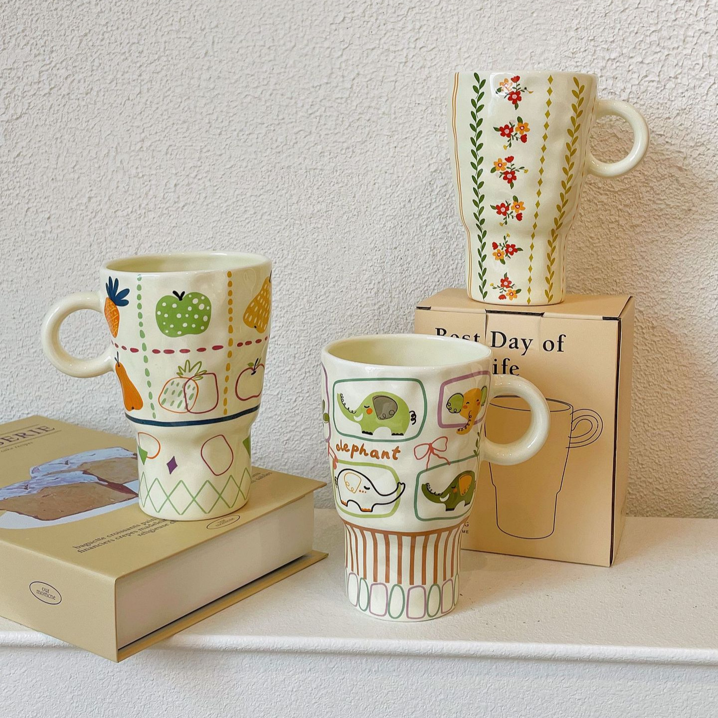 手握り創意マグカップ家庭用陶磁器高足カップ芸術感カップコーヒーカップオフィス大カップ