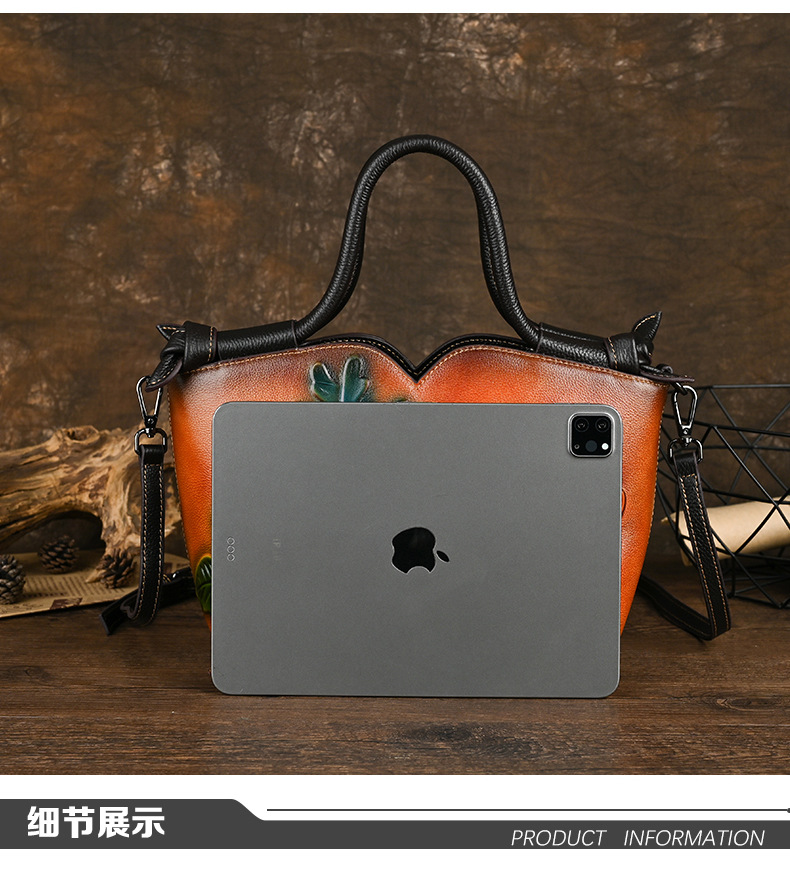 2024新品大容量本革ハンドバッグレディース斜めがけショルダーバッグ高級感レトロ牛革女性カバンバッグビッグバッグ