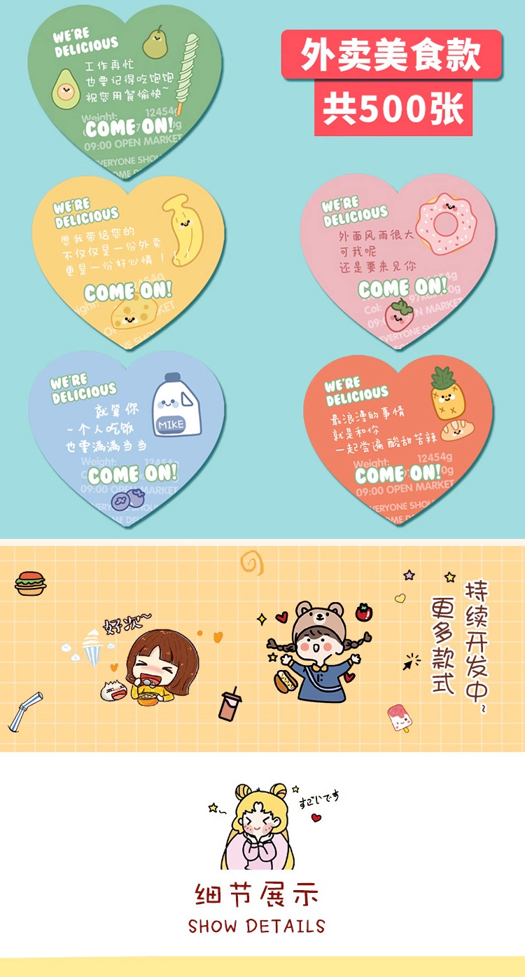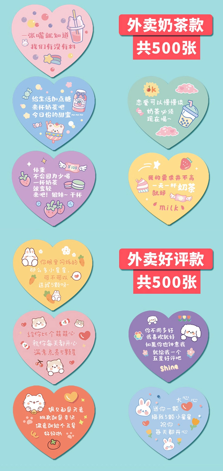 出前付箋卸売りネット赤コメントかわいい心好評価飲食シール創意ミルクティー店便箋手書き