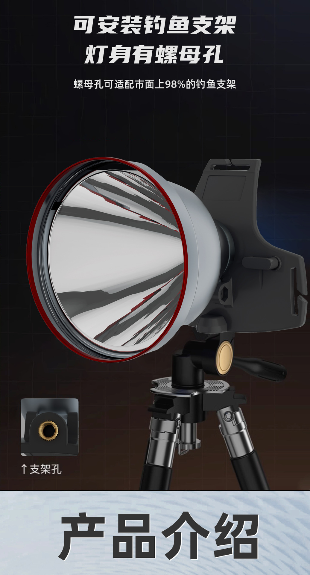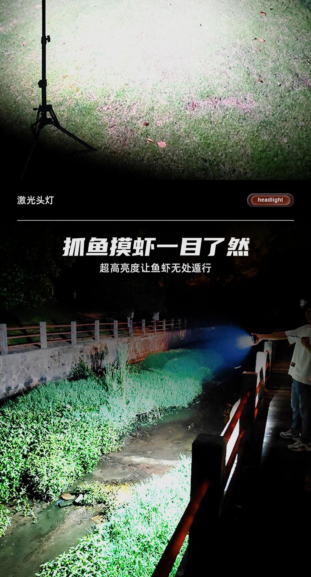 新型高出力釣り用ライト、屋外強力光、長距離照射、充電式、ヘッドマウント型、分割型、長時間持続、夜釣り用ライト、懐中電灯