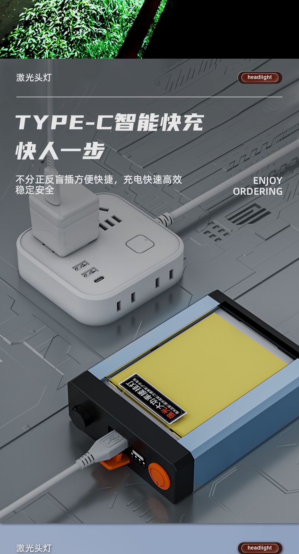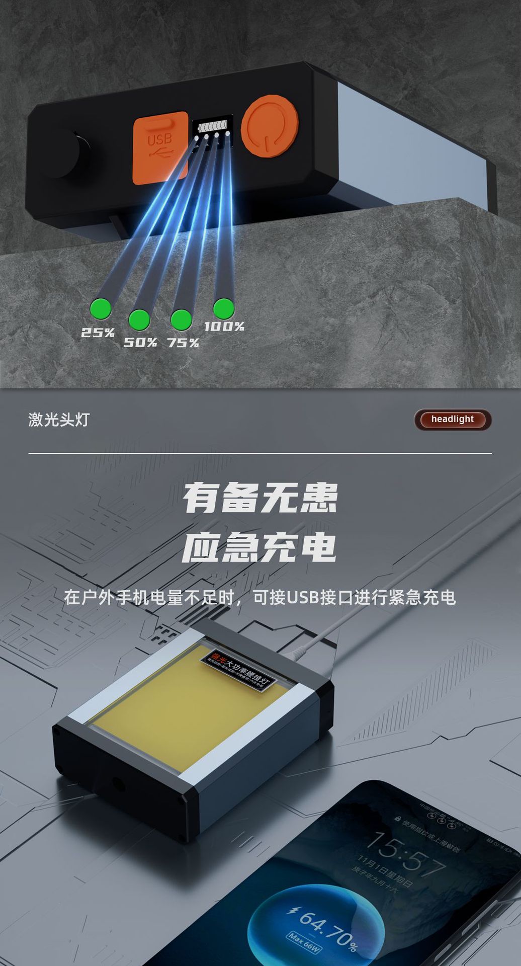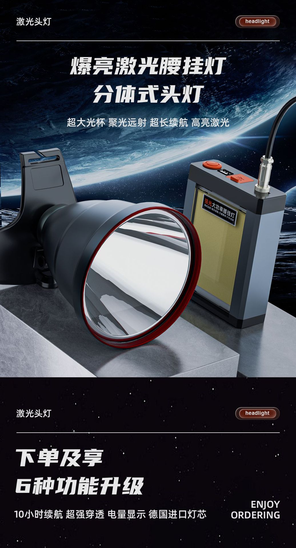 分体大容量強光遠射腰掛灯ヘッド装着式屋外遠射LED長航続充電探照鉱灯