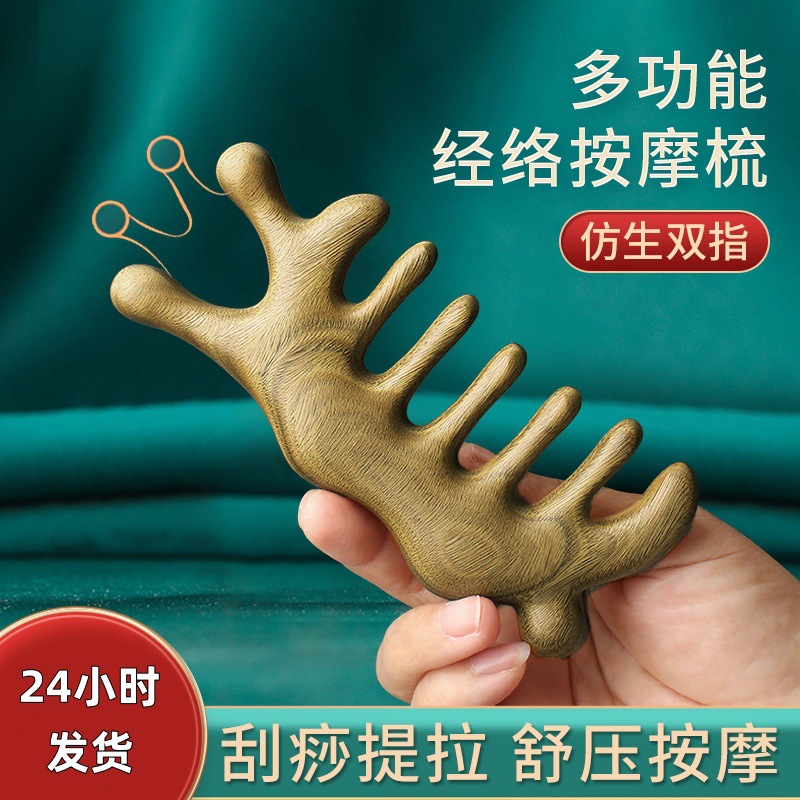 鹿角カエル両用マッサージ櫛頭経絡櫛檀木家庭用五爪木櫛カエルマッサージ器鼻剃り器